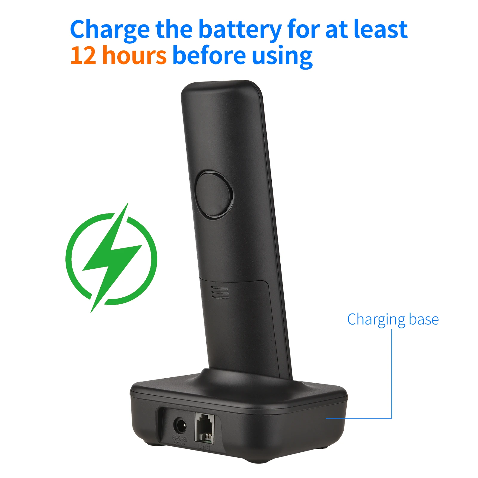 4.LCD задний светильник позволяет легче смотреть в тусклый светильник, и тихий режим позволяет вам наслаждаться моментом мира, когда это необходимо. Вы можете отключить звонок на трубке и базовом блоке немедленно или в течение длительного периода времени.
