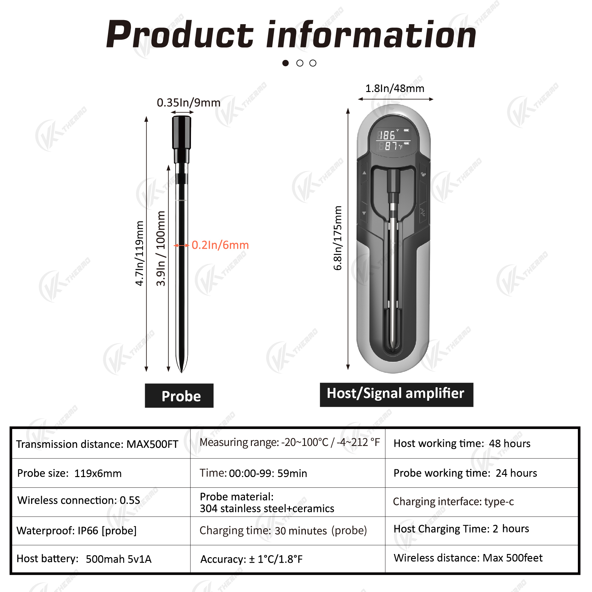 ✔️Идеальное приготовление пищи: ультратонкий зонд диаметром 0,2 дюйма/6 мм сохраняет пищу свежей и вкусной. Встроенный датчик температуры контролирует температуру до 100 ℃, точные усовершенствованные датчики отслеживают температуру, а предупреждение позволяет узнать, когда снимать еду с огня для достижения идеальных результатов.