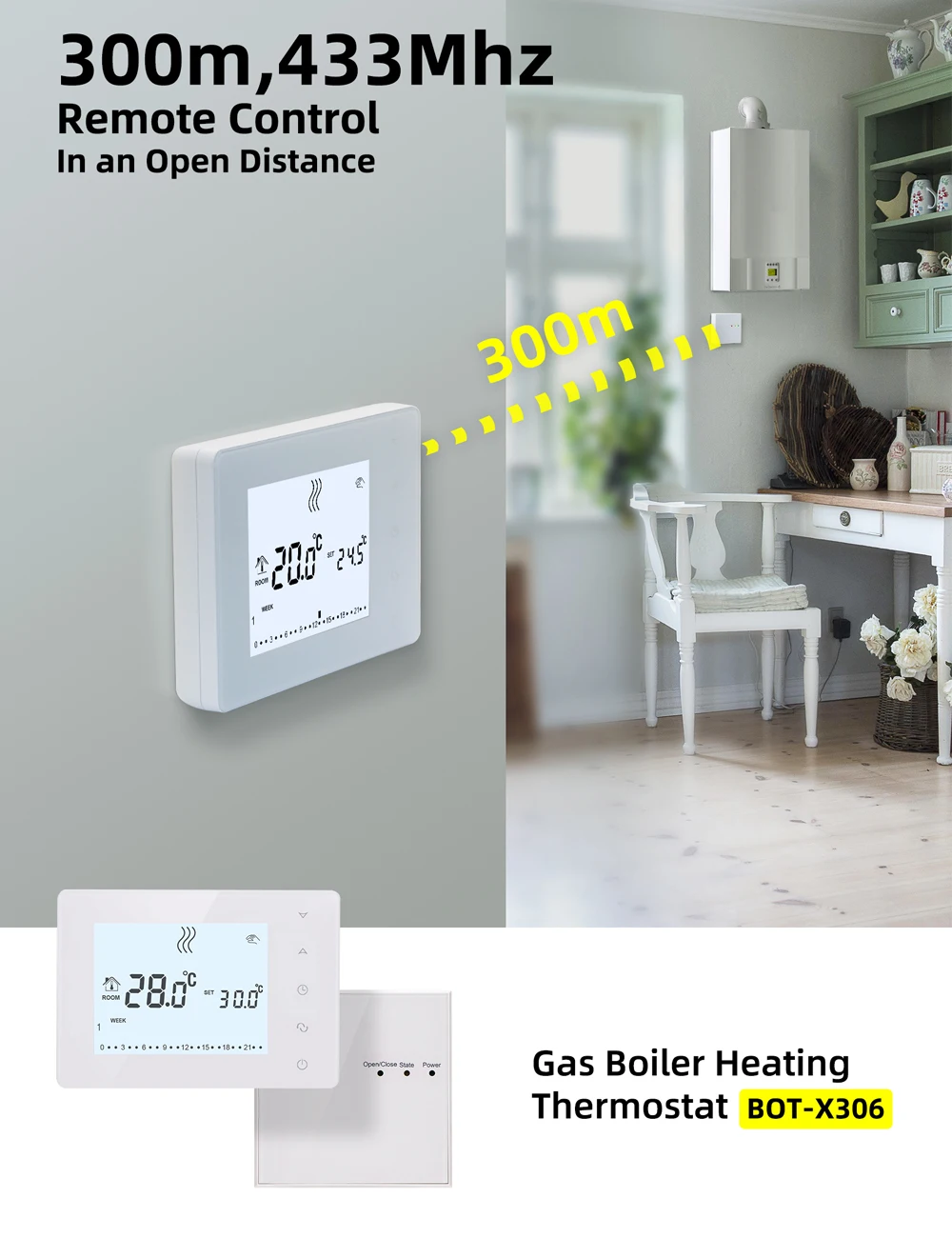 1. У BOT-X306 естьФункция Wi-Fi отсутствует, Поэтому он не может управляться по телефону. Это беспроводной, контроллер и приемник подключены через радиочастоту 433 МГц.