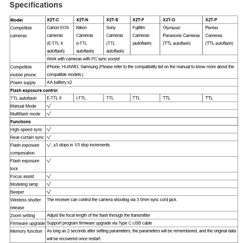Номер модели X2T-C/X2T-N/X2T-S/X2T-F/X2T-O/X2T-P