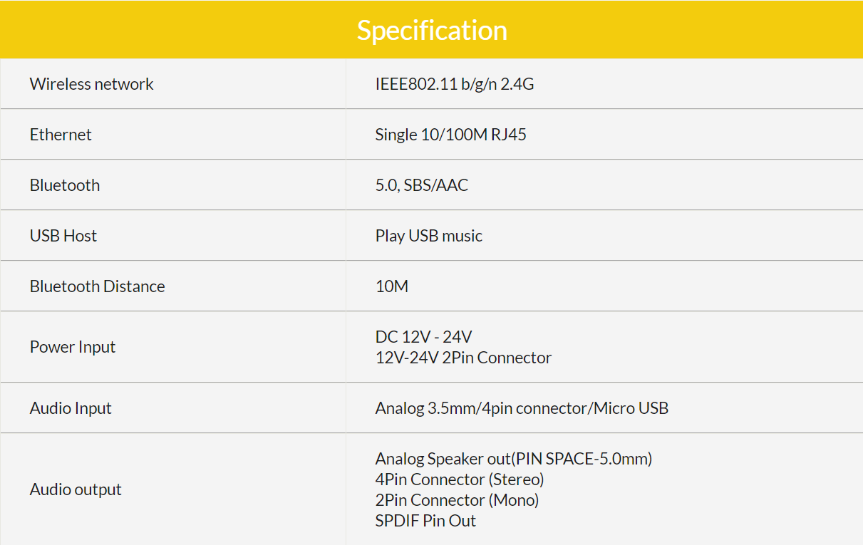Основываясь на нашей статистике, даже если вы не знакомы с навыками DIY или ищете проекты DIY. Многие люди по-прежнему выбирают плату стереоусилителя Up2stream Amp V4 для применения с пассивными стереодинамиками. Несмотря на то, что это модуль DIY, мы разработали общий интерфейс, подходящий для большинства имеющихся у вас динамиков. Особенно, если вы планируете купить несколько единиц для сборки домашней стереосистемы, это очень удобный вариант с бюджетом. Up2stream Amp V4 также поддерживает несколько режимов потоковой передачи, Wi-Fi, сеть, Bluetooth, Airplay, Spotify Connect и линейный выход. Если вы хотите использовать Bluetooth, трансляцию или Потоковую передачу Wi-Fi, Up2stream Amp V4-идеальный выбор для вас. Мы интегрировали все решения, упомянутые выше, для вас. Если эти требования соответствуют вашим потребностям, не стесняйтесь и попробуйте!