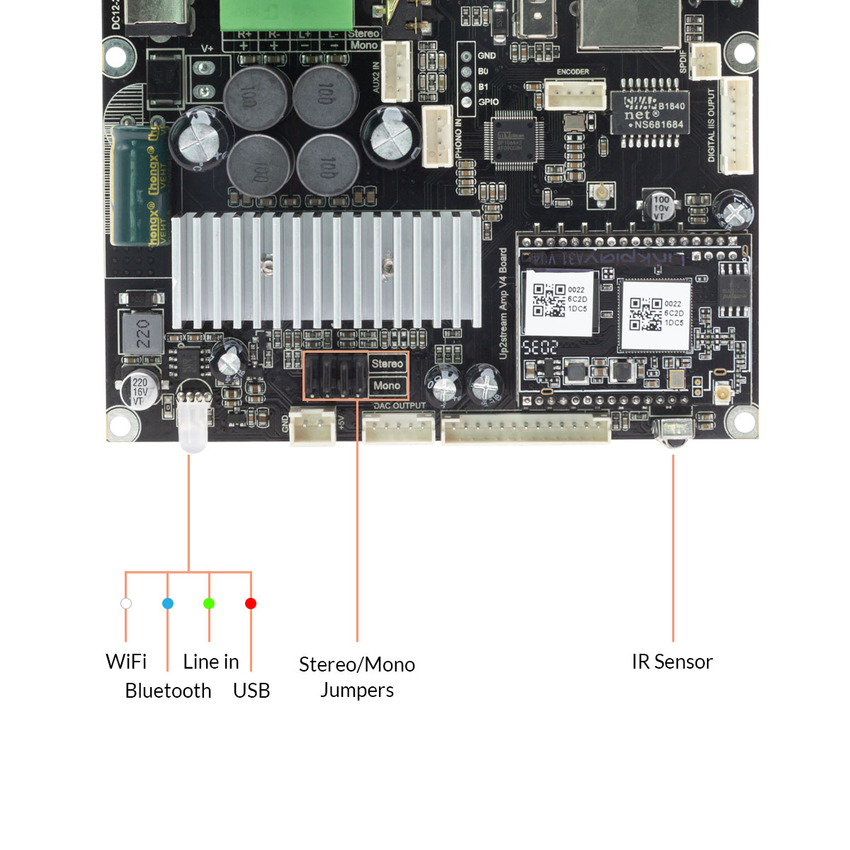 -Up2Stream AMP V4-это плата стерео/моно усилителя Wi-Fi и Bluetooth 5,0, которую можно применить к существующей обычной аудиосистеме, чтобы сделать ее беспроводной, это также решение «Все-в-одном» для домашних мастеров, чтобы сделать свою индивидуальную беспроводную аудиосистему.