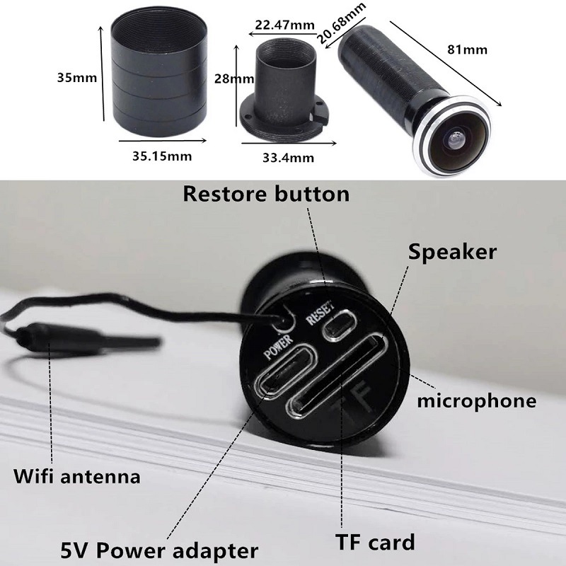 Устанавливается в глазок ворот Противоугонная дверь, она может быть противоугонной, лицо наблюдения уничтожает дверной замок и наклеивает небольшую рекламу, И sd-карта сохраняет запись видео для удобного сбора доказательств