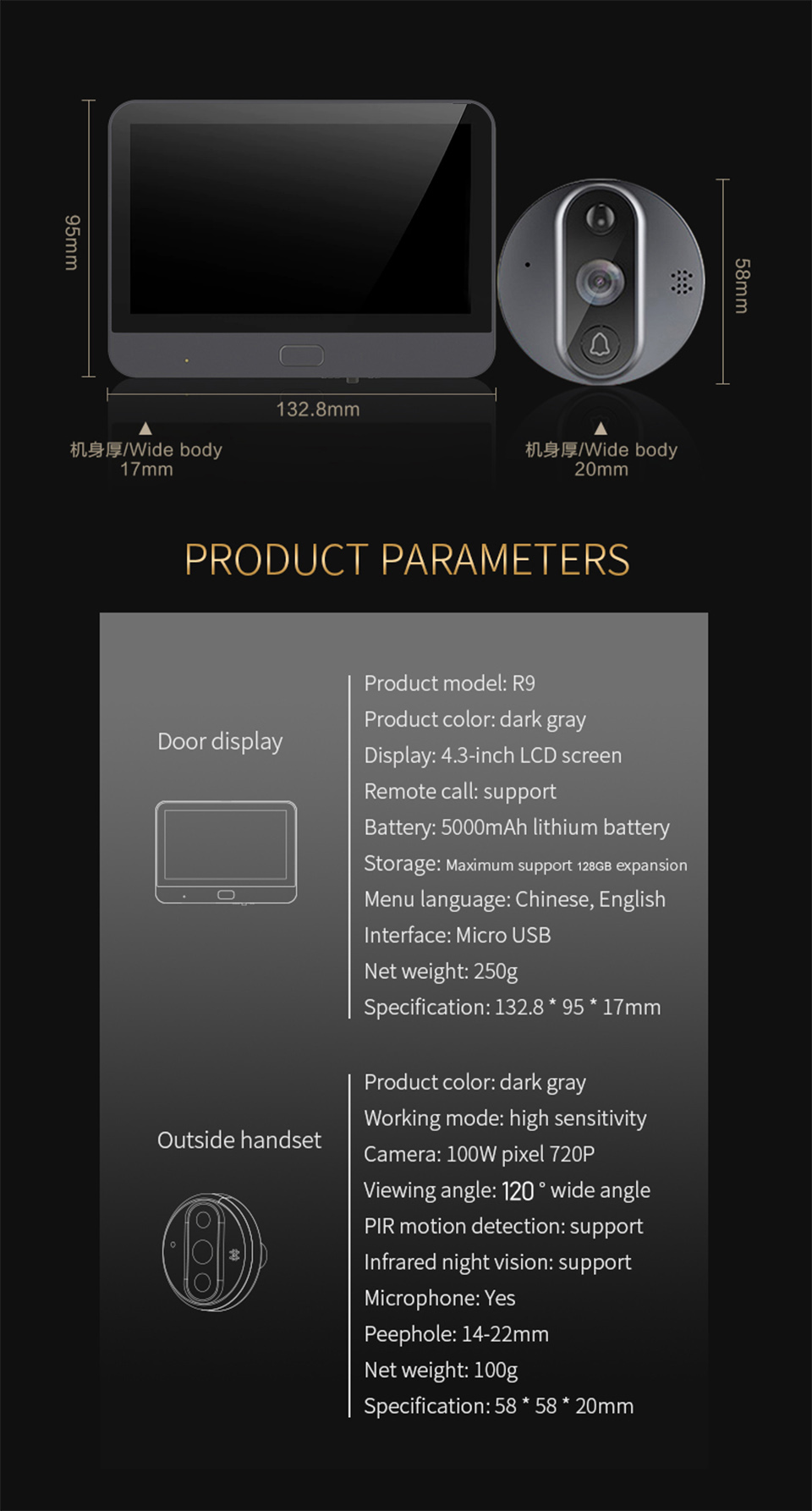 ◆ Кошачий глаз контролирует внешнюю среду 24 часа. При аномальной тряске он немедленно отправит тревожное сообщение на ваш мобильный телефон и запишет внешнюю ситуацию в режиме реального времени.