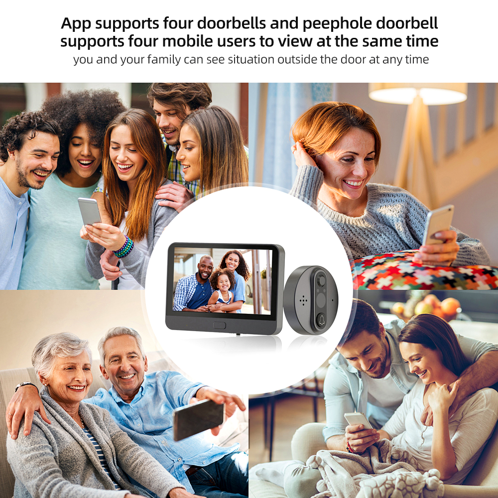 Дверной звонок Cat Eye поддерживает одновременную работу 4 пользователей мобильных приложений, что позволяет вам и члену вашей семьи видеть обстановку на открытом воздухе в любое время.