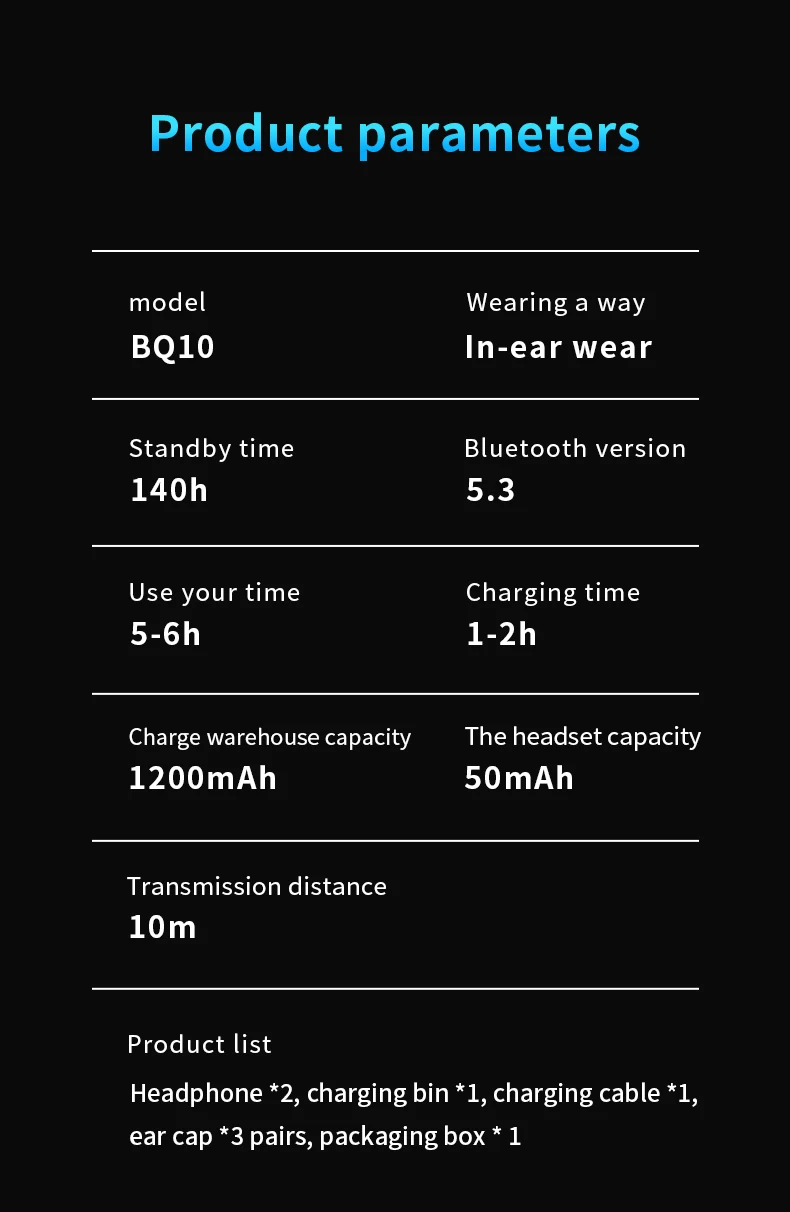 Беспроводные наушники BQ10, TWS наушники с низкой задержкой, с поддержкой Bluetooth, с сильными басами и шумоподавлением