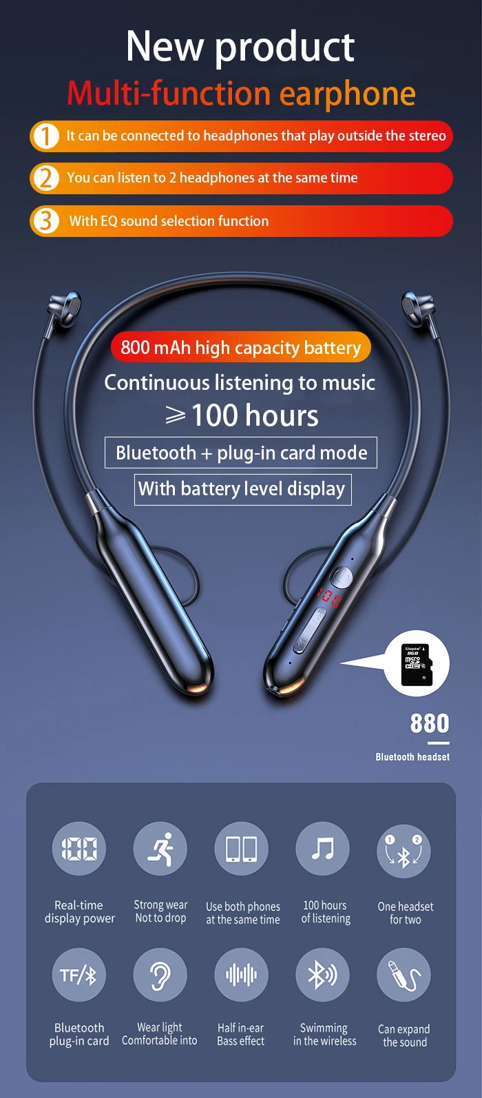 【 7 】 Он может использовать отдельные наушники, купить 1 наушник = 2 наушника, он может поддерживать подключение 2 мобильных телефонов.
