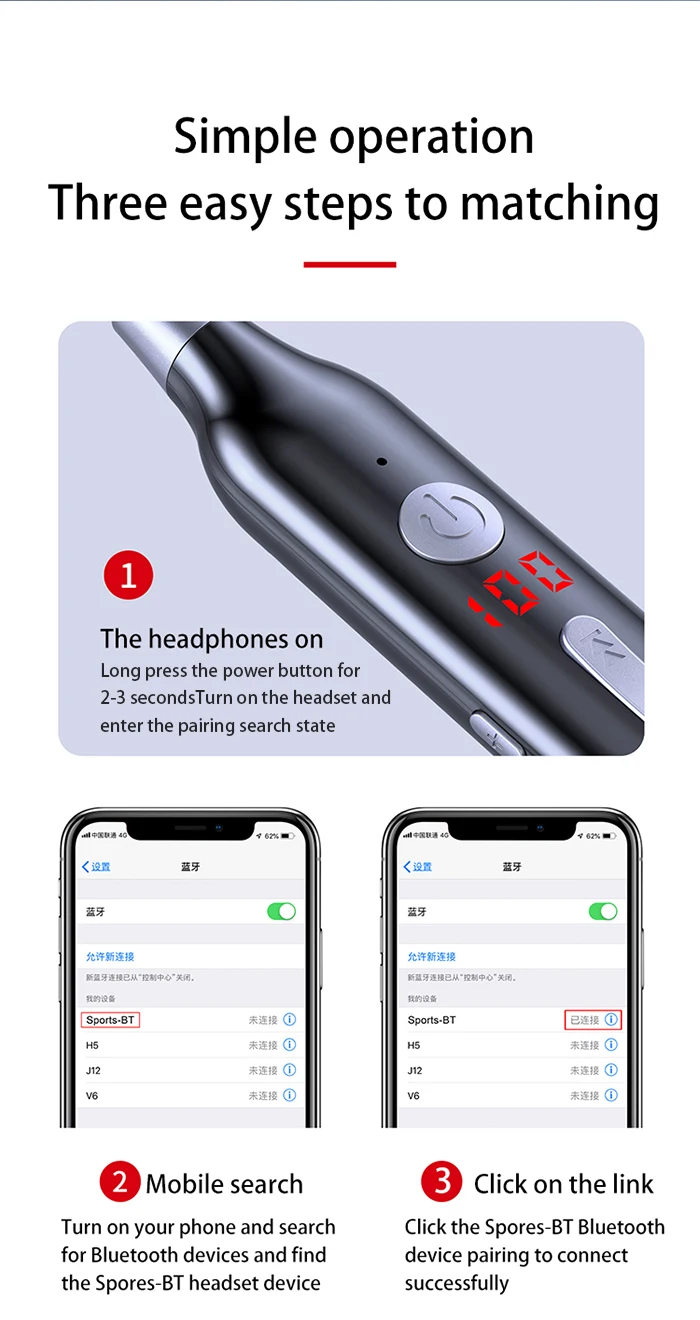 【 6 】 С Bluetooth 5,0, совместимым со смартфонами iPhone или Android. Встроенный микрофон.