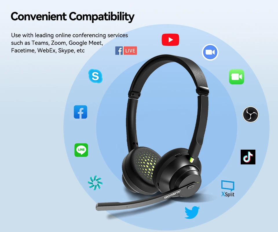 Стерео гарнитура AUSDOM A2304 Voipfocus Bluetooth 5,1