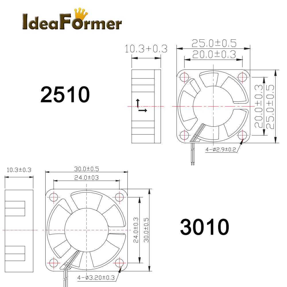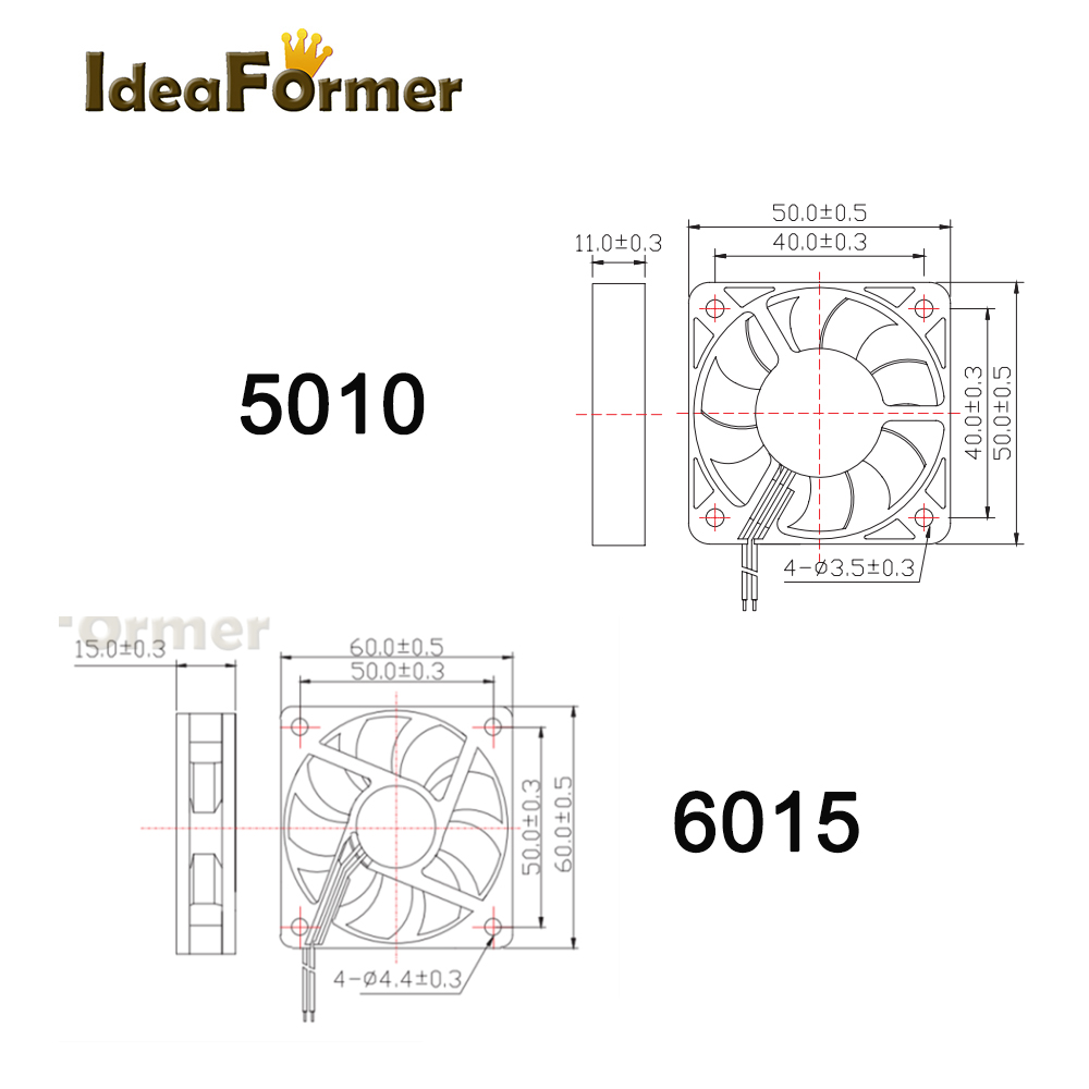 Размер вентилятора: 25*25*10 /30*30*10 /40*40*10 /50*50*10 /60*60*15 мм