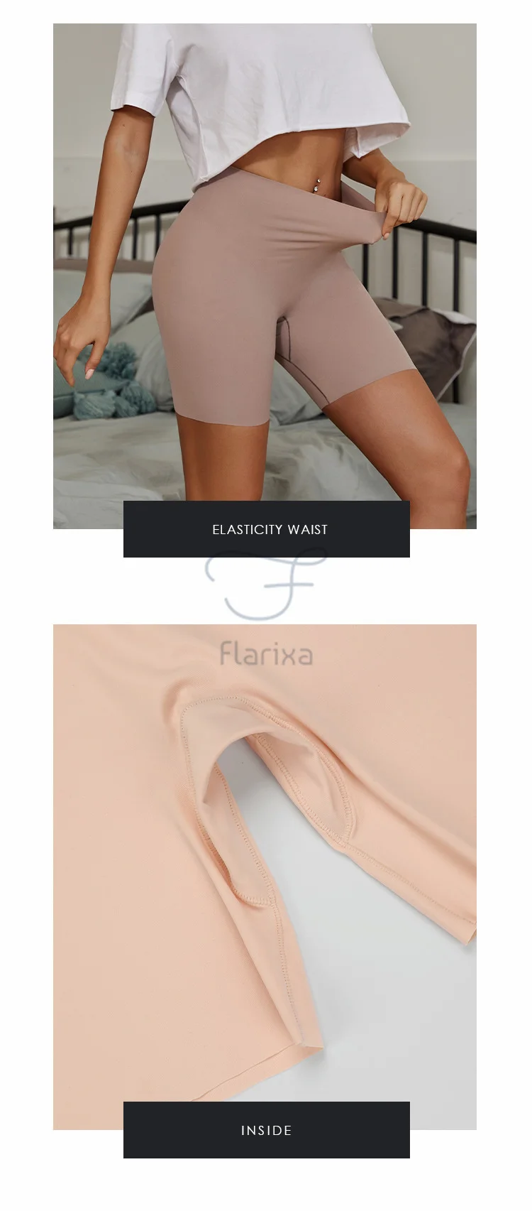 Бесшовные спортивные шорты Flarixa Женские трусики Защитные брюки с высокой талией и бедрами для живота Тонкое Корректирующее нижнее белье Трусы-боксеры из ледяного шелка