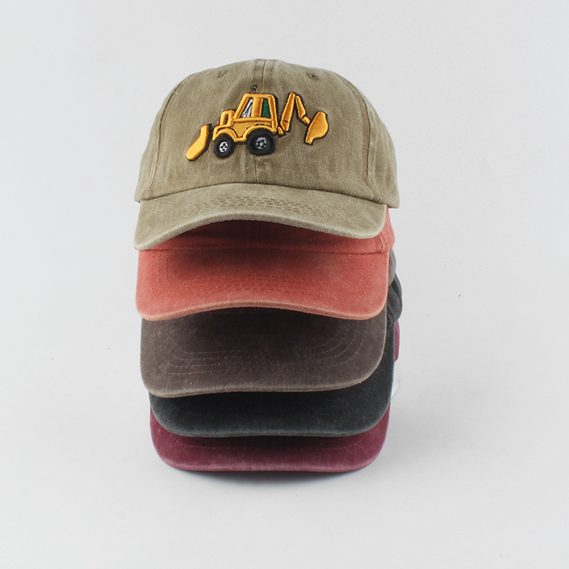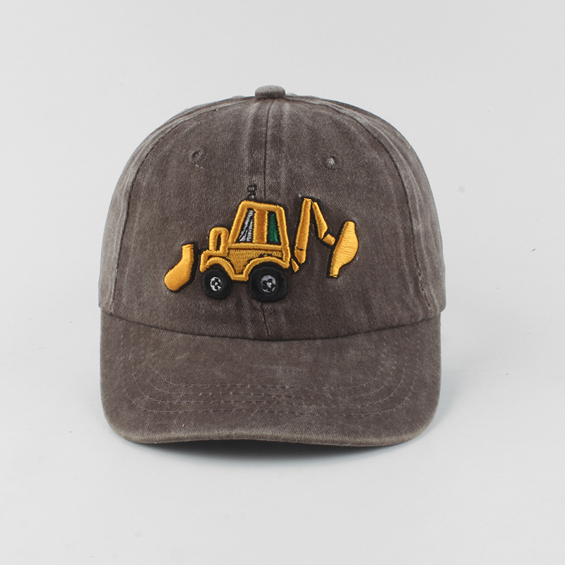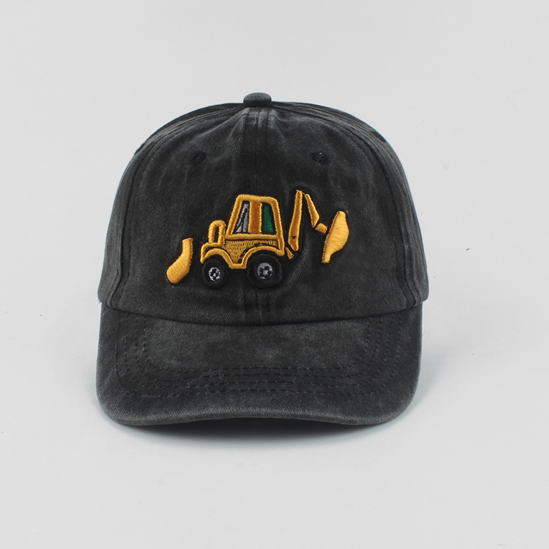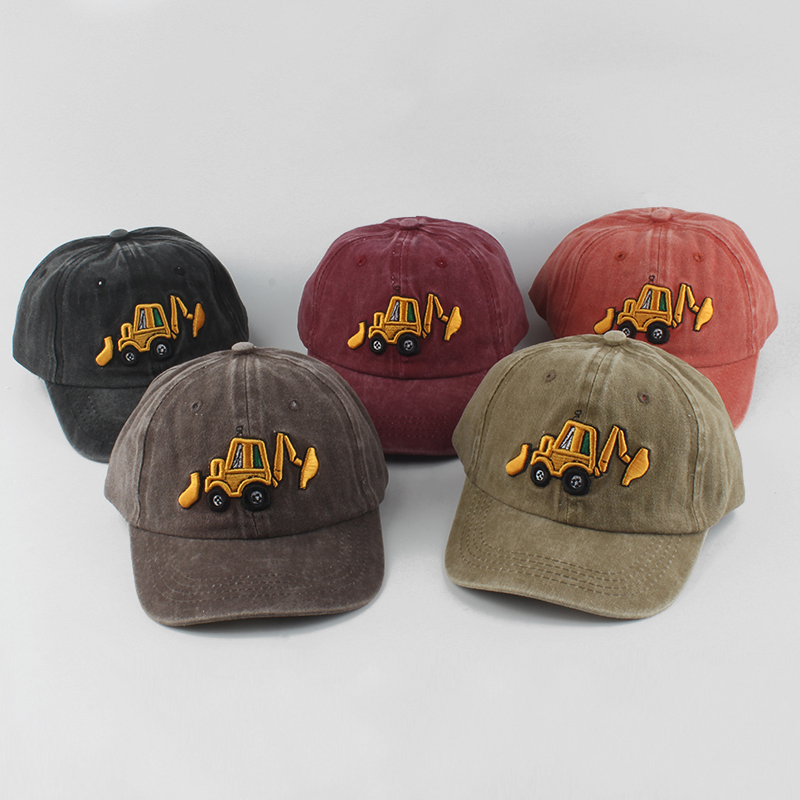 Бейсболка для мальчиков и девочек, хлопок с эффектом потертости, мультяшная вышивка экскаватора, Детская кепка, летняя