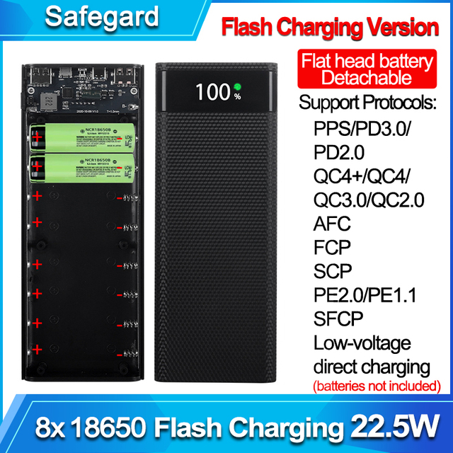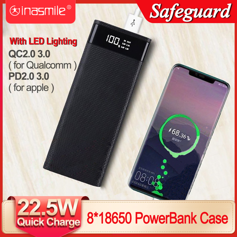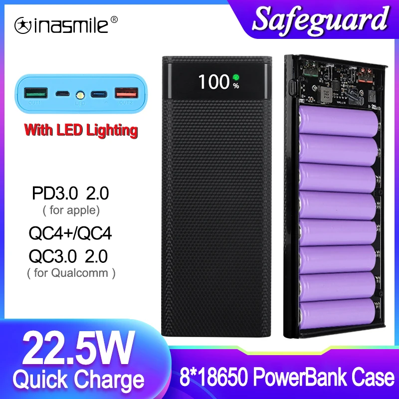 Двойной USB 8*18650 Батарейный ящик 22,5 W QC3.0 Быстрая зарядка для телефонов с зарядкой светодиодный съемный внешний аккумулятор с подсветкой чехол