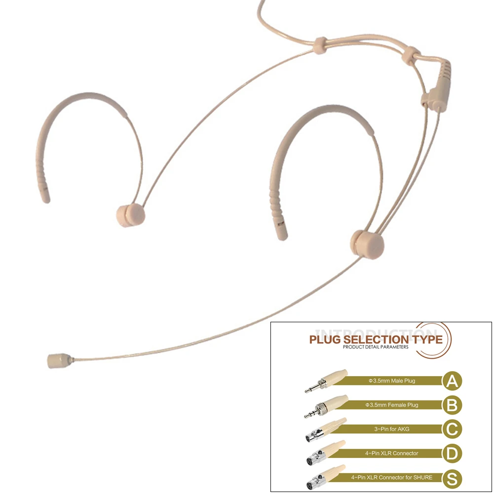 Бежевый двойной наушник гарнитура микрофон головной микрофон 3,5 мм 3 контакта 4 контакта XLR штекер со стальными наушниками-Аксессуары