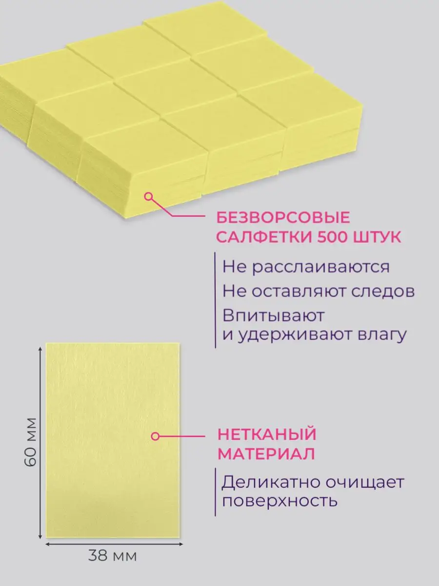 Комплектация Cалфетки для маникюра, ногтей; снятия липкого слоя; косметические; Твердые; нетканые