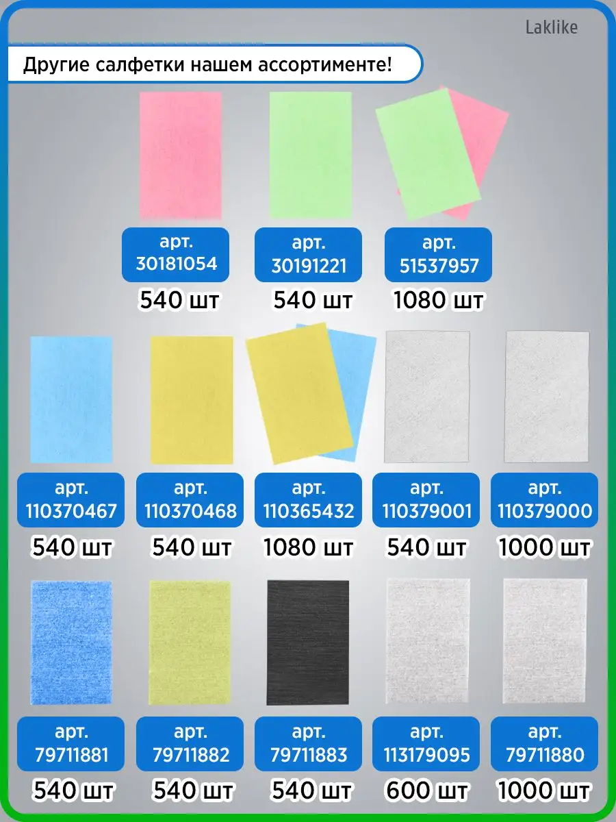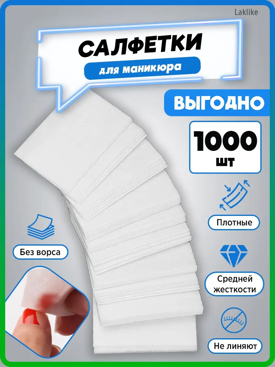 Комплектация салфетки - 1000 шт; Салфетки косметические; безворсовые салфетки для маникюра упаковка 1000 шт; Безворсовые салфетки для снятия гель лака