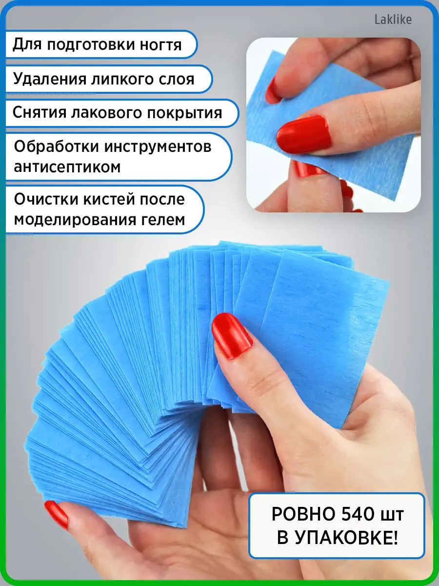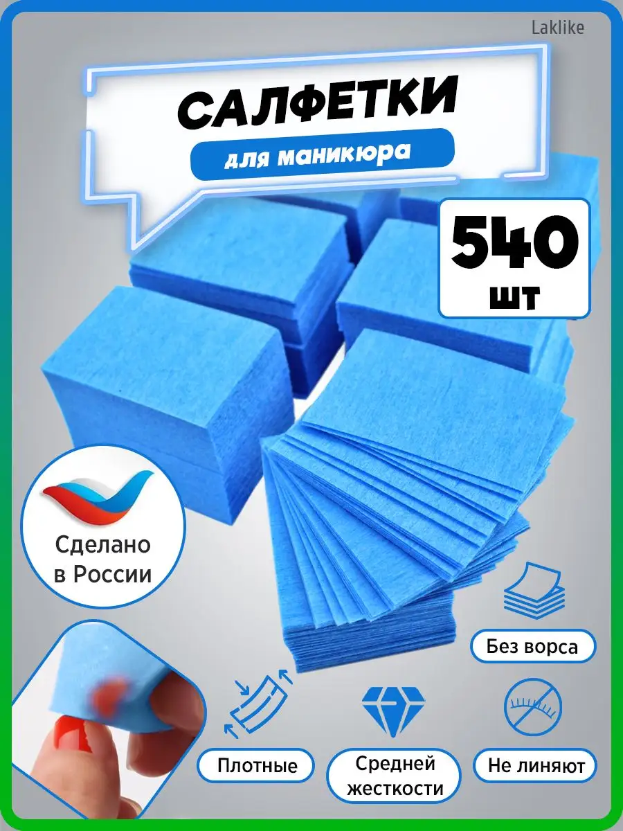 Комплектация салфетки - 540 шт; Салфетки косметические; безворсовые салфетки для маникюра упаковка 540 шт; Безворсовые салфетки для снятия гель лака