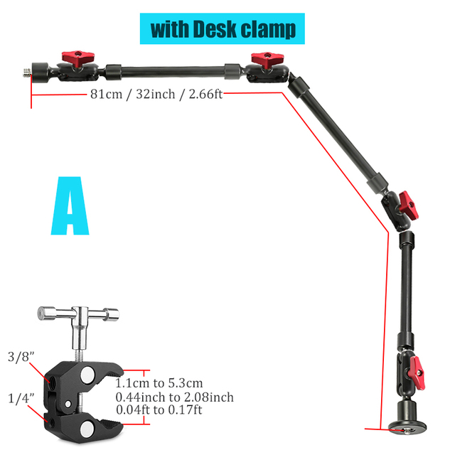 Diameter of magic arm: 1.3cm/0.51inch / 0.04ft
