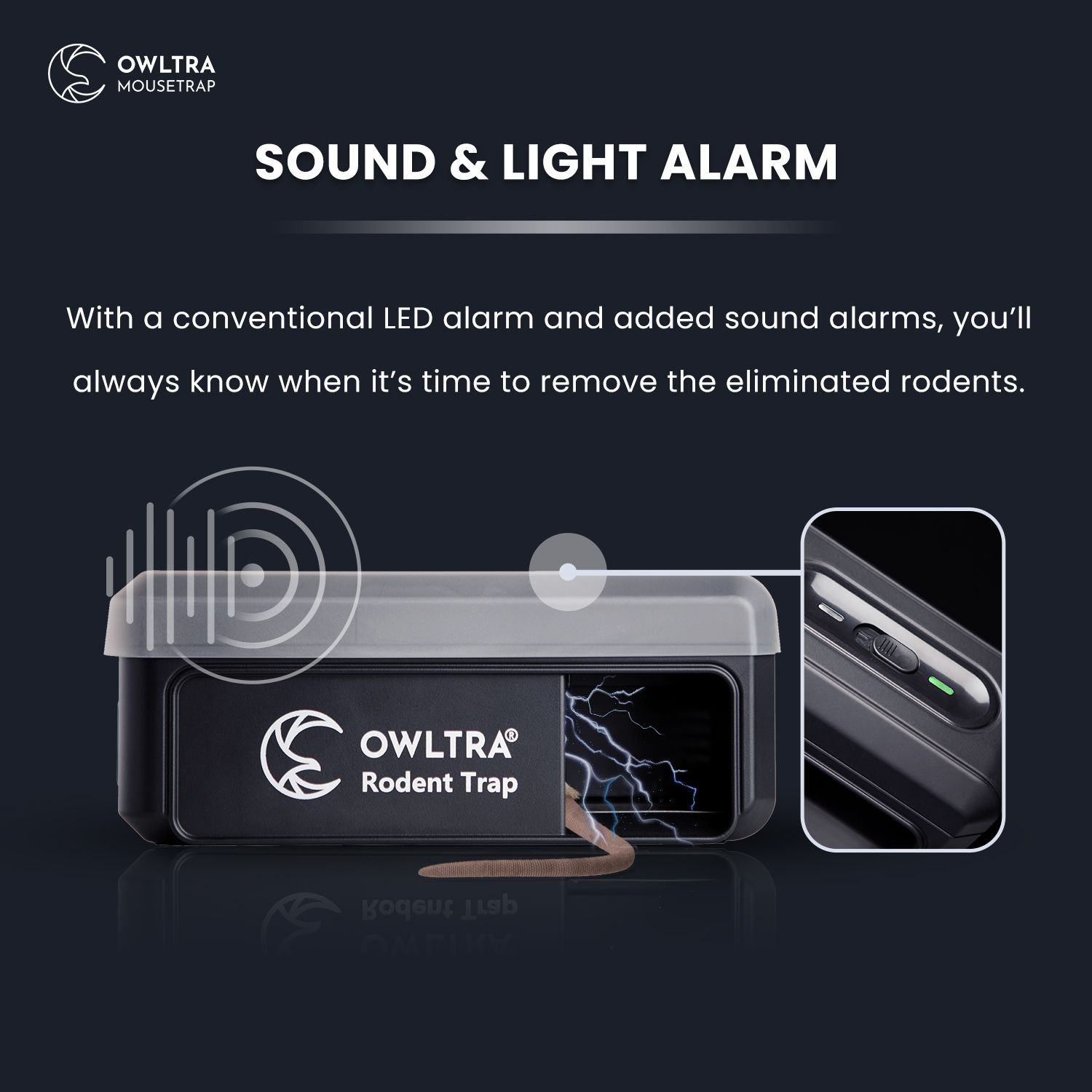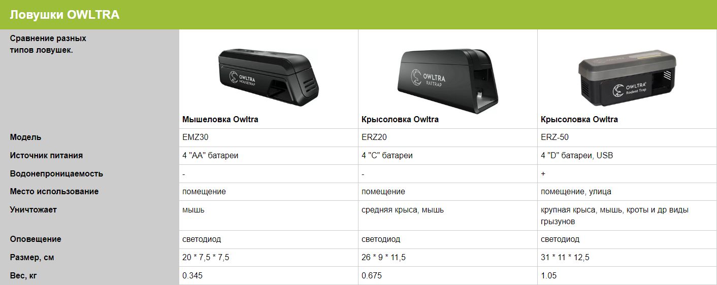 OWLTRA Outdoor - это электронная водонепроницаемая ловушка для грызунов для помещений и улицы, которая позволит Вам избавиться от больших популяций грызунов. Её можно использовать на открытом воздухе вместе с водонепроницаемым чехлом, который идет в комплекте с прибором. Небольшая коробочка, в которую Вы можете поместить приманку для грызуна. На дне ловушки размещена пластина из нержавеющей стали, которая генерирует около 5000-8000 вольт высокого напряжения при срабатывании датчиков.