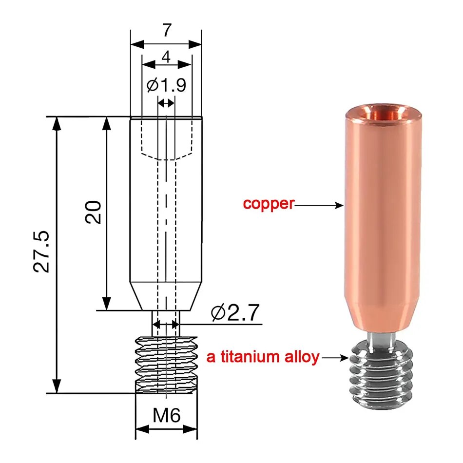 Номер модели Smooth Heatbreak Upgrade All Metal Titanium and Copper Bimetal Throat