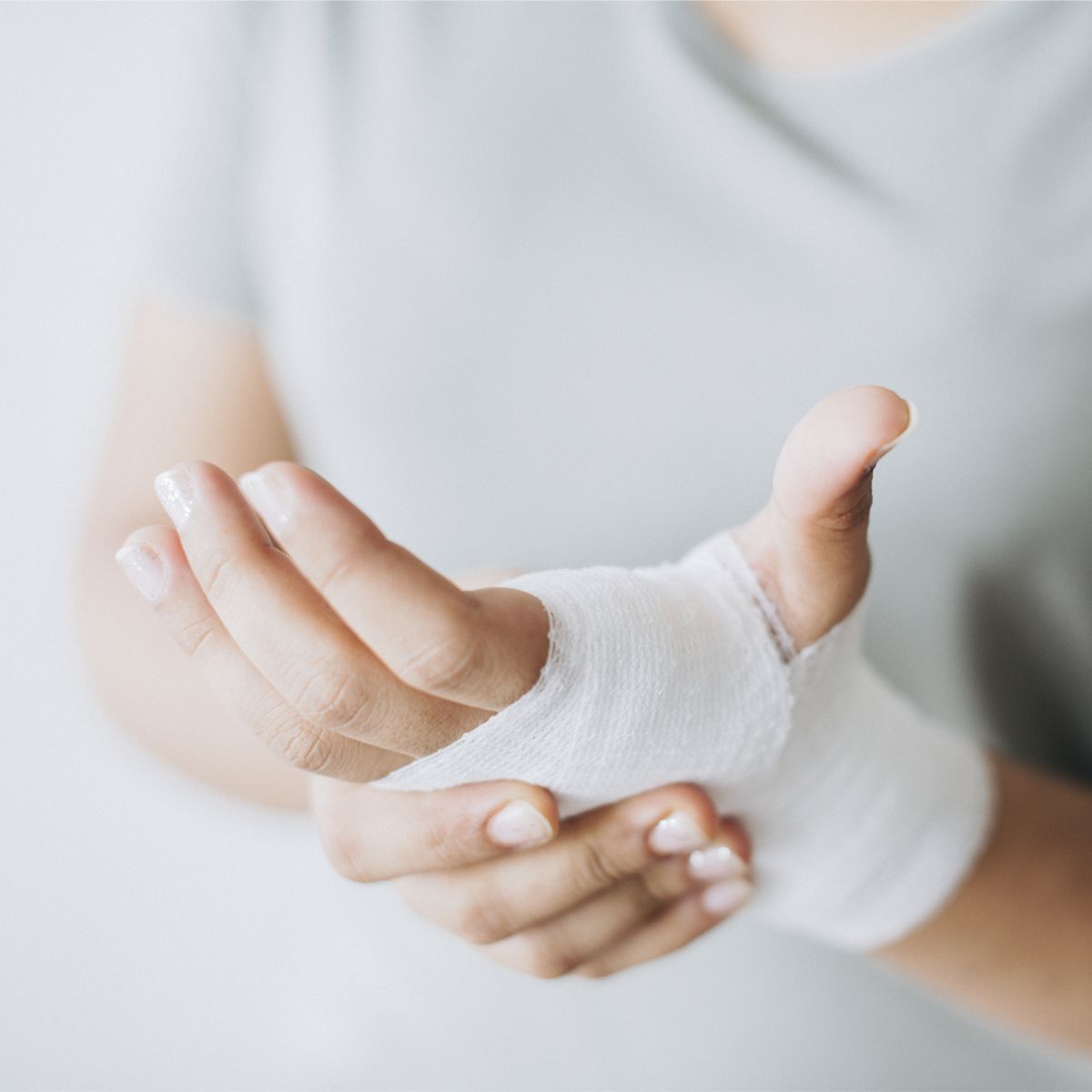 Бинтуйте от основания пальцев, оставляя их открытыми.