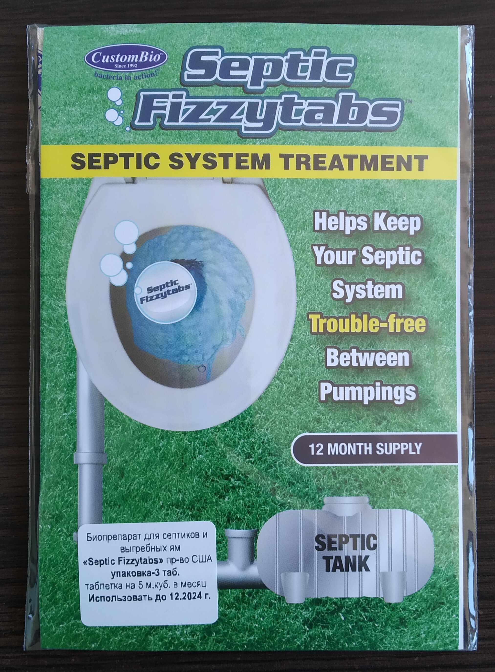 Биопрепарат (бактерии) Septic Fizzytabs пр-ва США, для септиков и выгребных ям в таблетках. Упаковка на 3-6 месяцев. 1 таб. рассчитана на 5,6 куб. м., упак. 3 таб