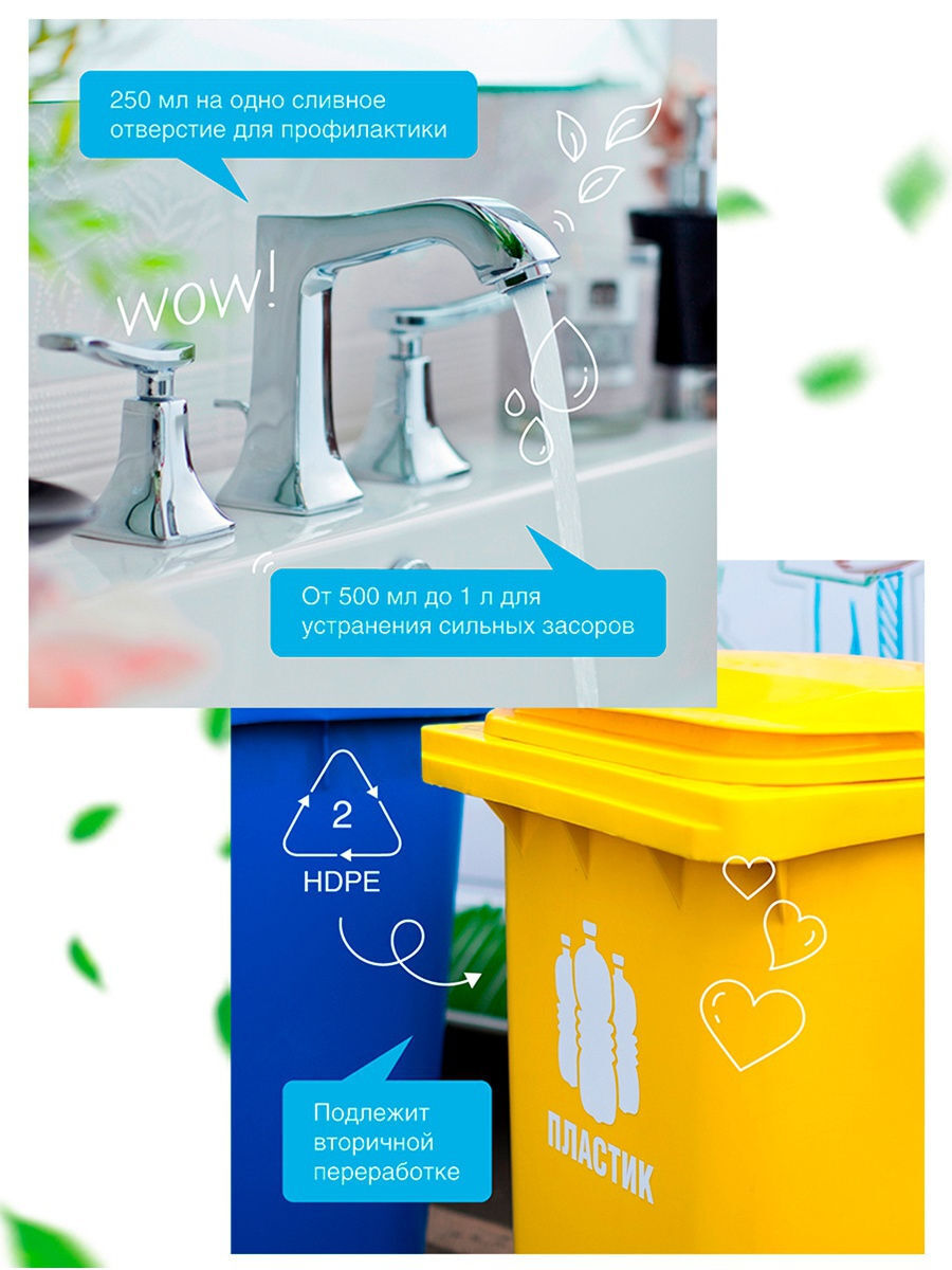Биоразлагаемое средство для устранения, чистки и профилактики засоров в канализационных трубах Synergetic, 1л