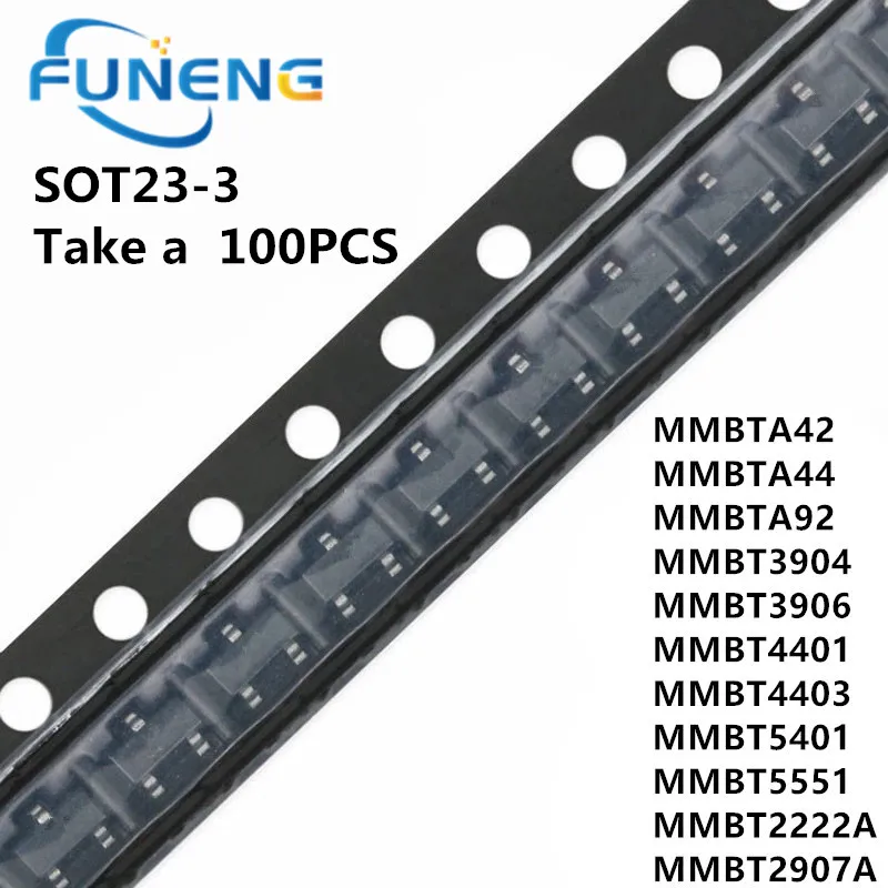 Биполярные транзисторы MMBT2222A, MMBT2907A, MMBT3904, MMBT3906, MMBT4401, MMBT4403, MMBT5401, MMBT5551, MMBTA42, 100 шт./партия