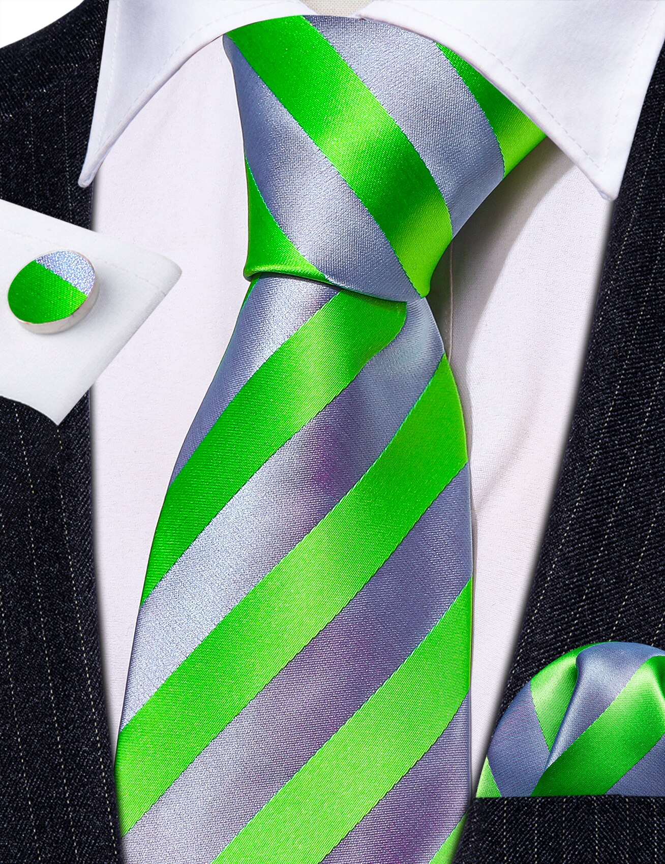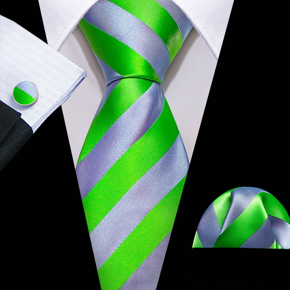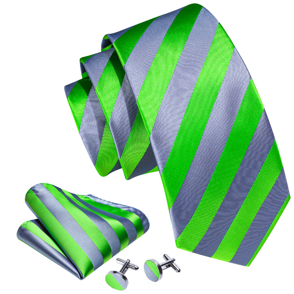Чирок-зеленый роскошный галстук 2023 Носовой платок Набор запонок Классический Шелковый тканый галстук в полоску Свадебный бизнес-дизайнер жениха LN-6300