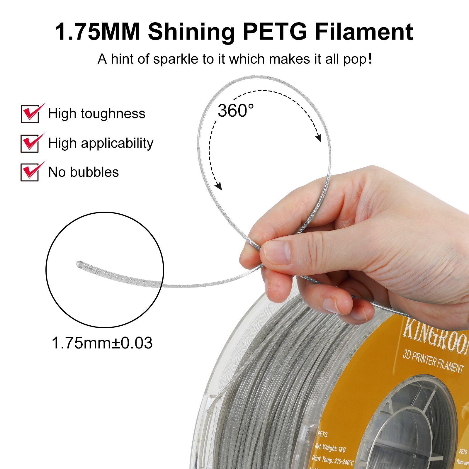 Нить нити 1KG 1,75mm вспышки PLA/PETG Kee Pang сияющая для материалов принтера 3D Нить печатания Enviornmental
