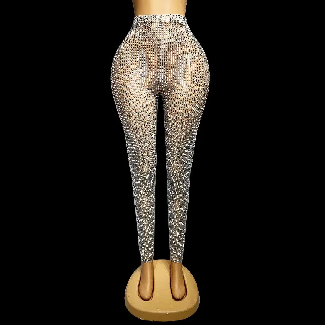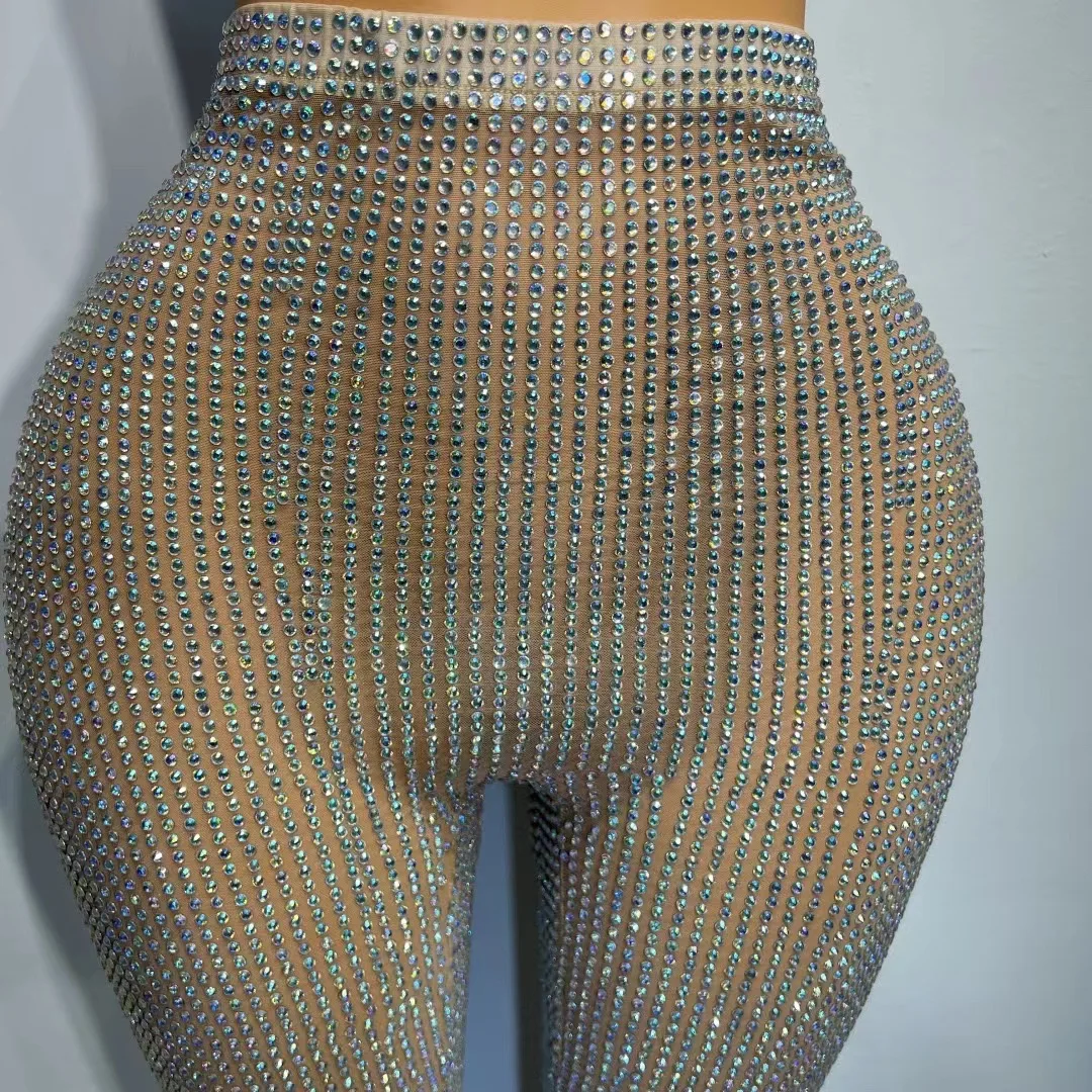 Блестящие штаны с кристаллами AB для выпускного вечера Роскошные Джеггинсы Экипировка для празднования блестящий сексуальный костюм для шоу