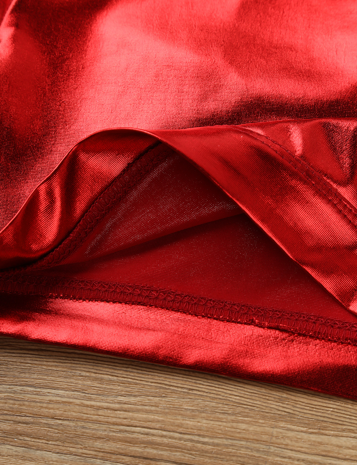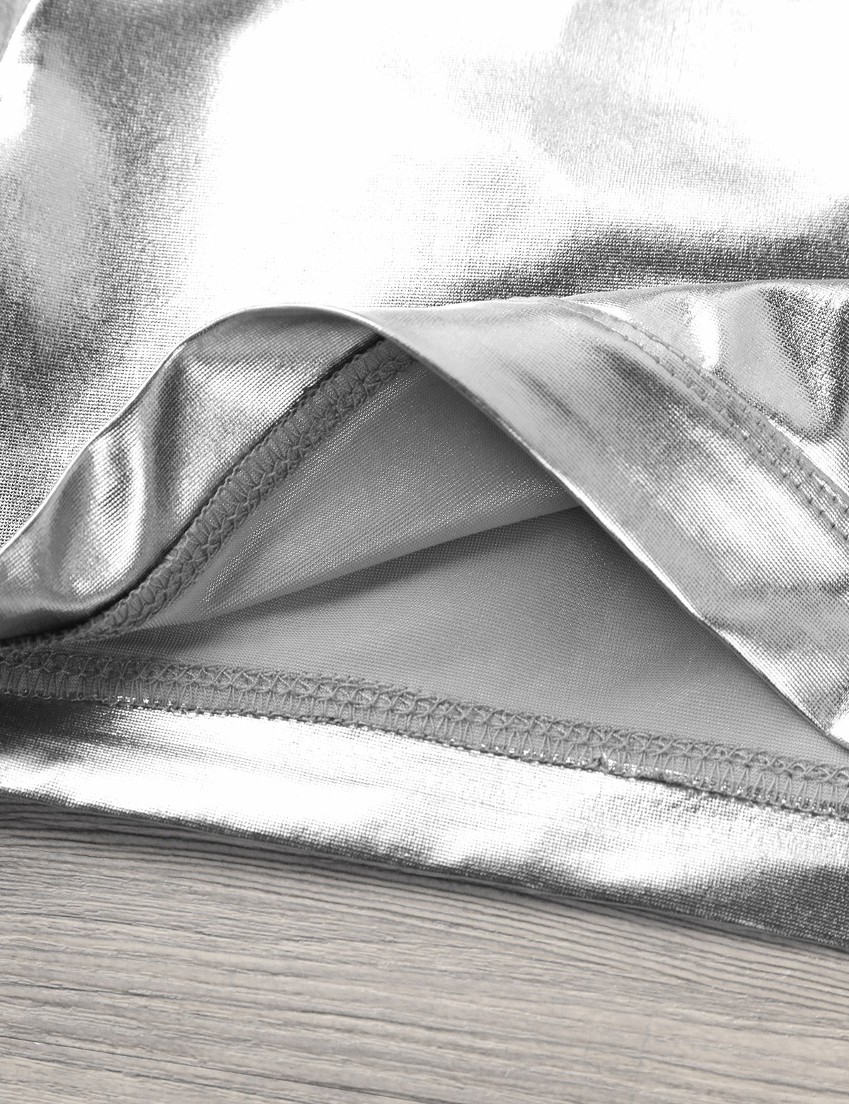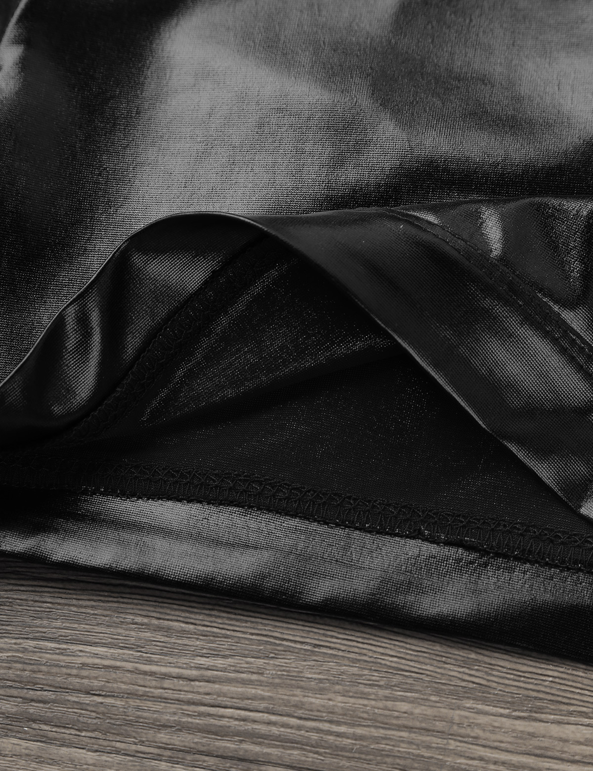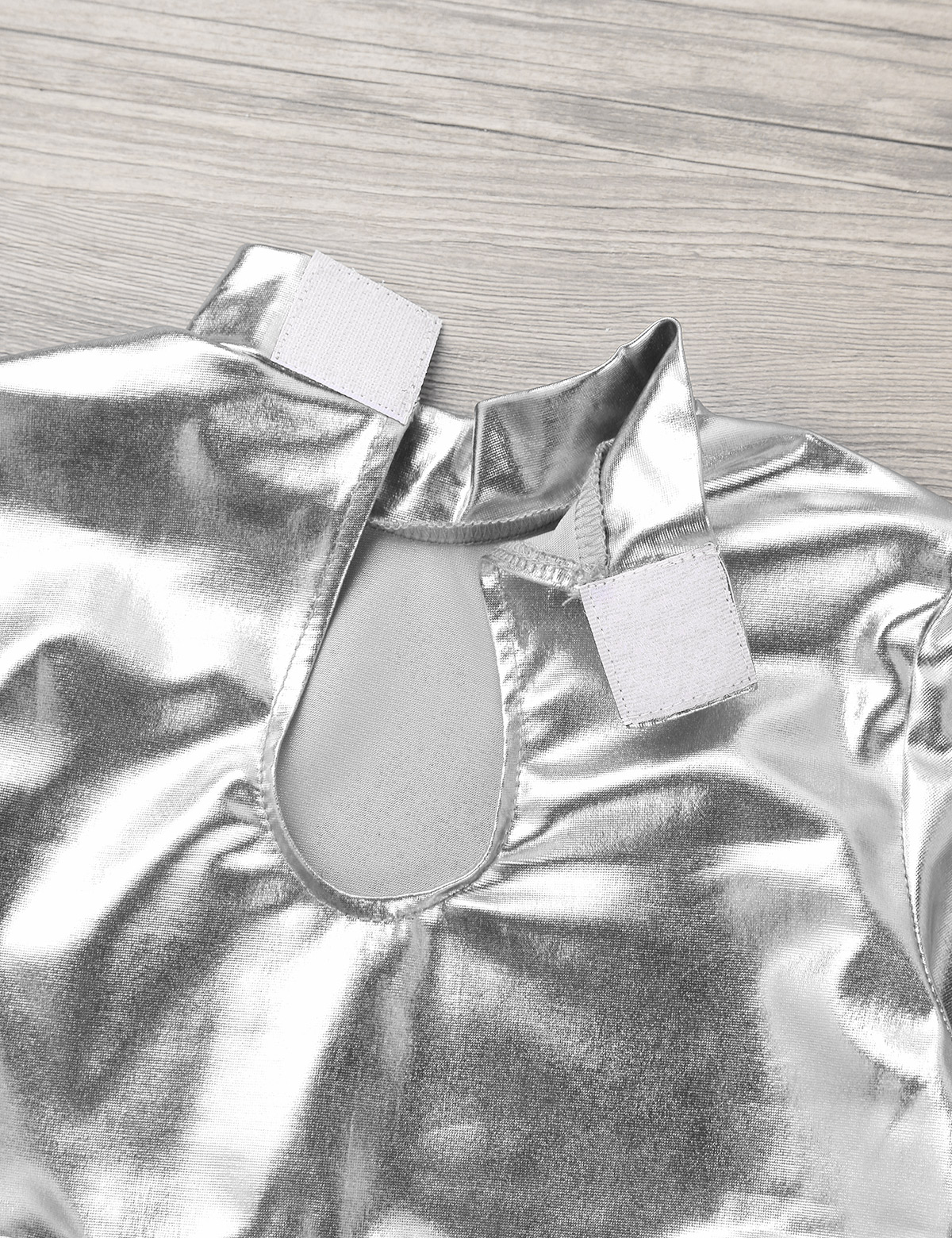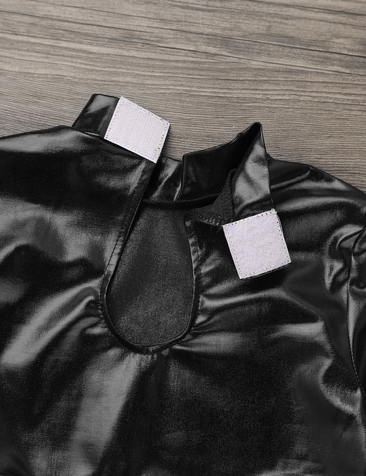 Длинные рукава, ложный вырез с застежкой на липучку, вырез на спине. Глянцевый внешний вид.