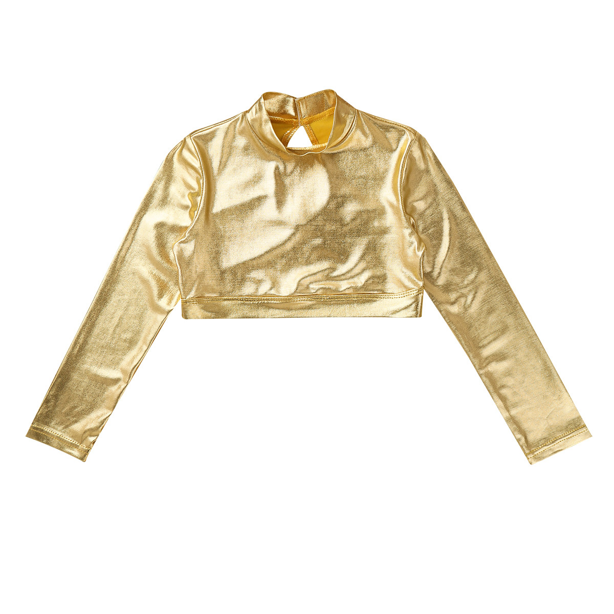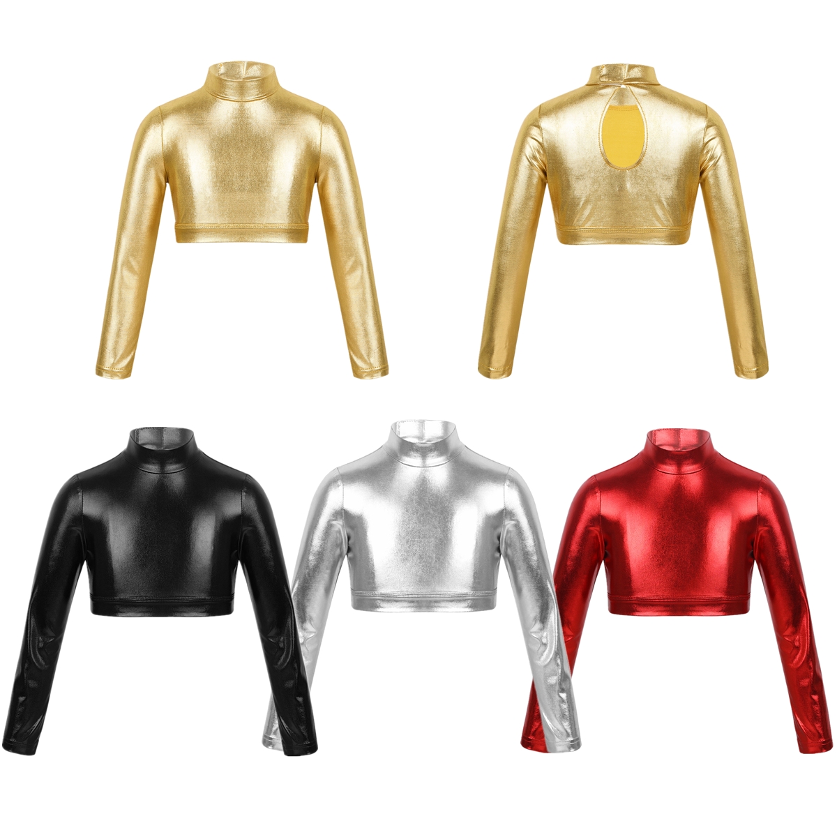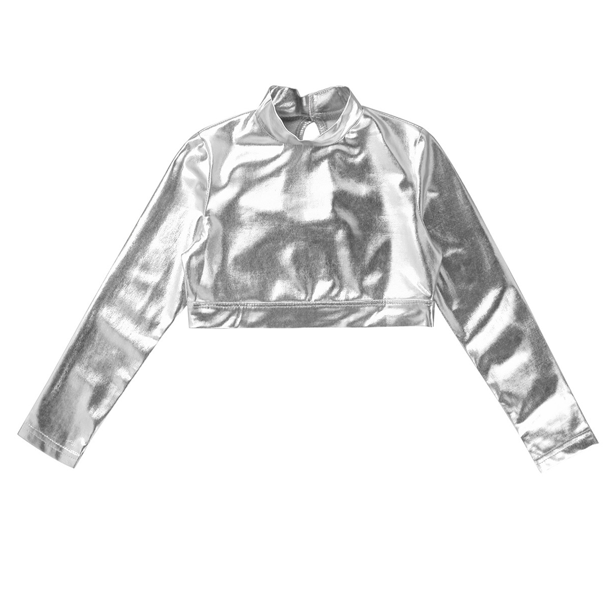Блестящие спортивные топы для танцев для девочек, футболка с длинным рукавом, глянцевый костюм для гимнастики, танцев, сценического выступления, металлический верх