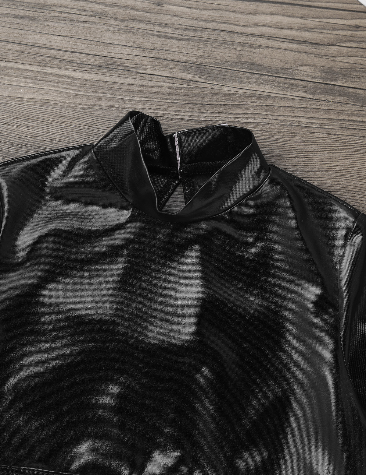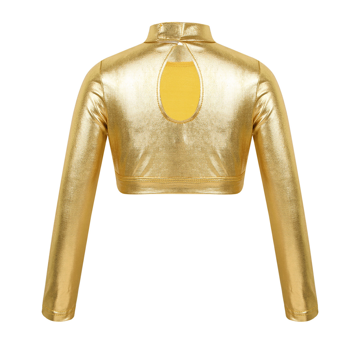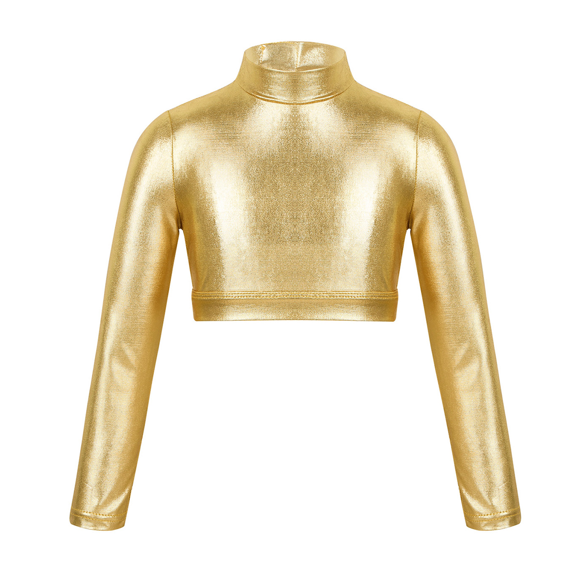 Блестящие спортивные топы для танцев для девочек, футболка с длинным рукавом, глянцевый костюм для гимнастики, танцев, сценического выступления, металлический верх
