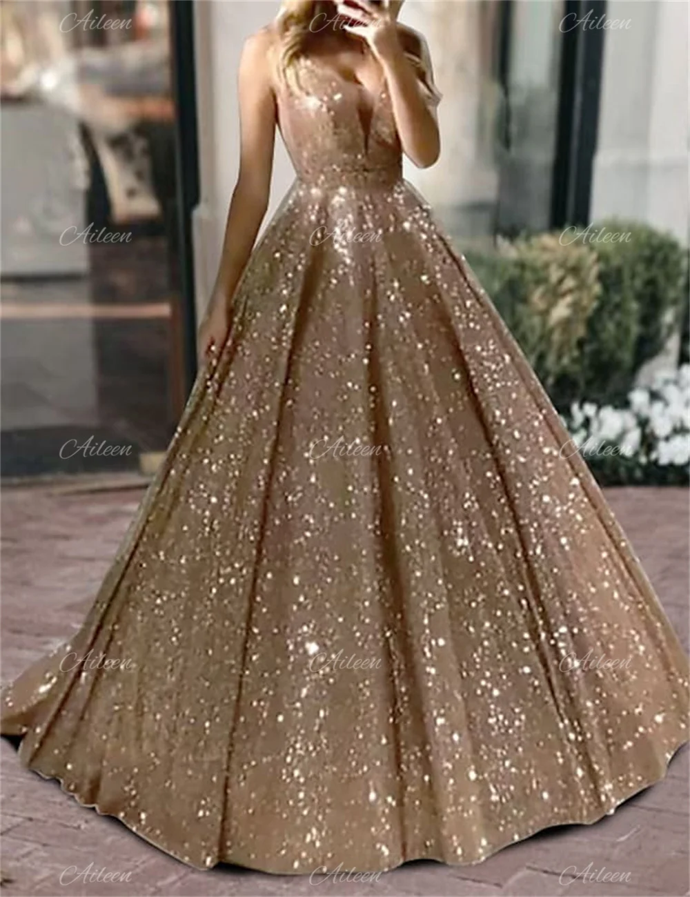 Блестящие вечерние платья цвета шампанского с V-образным вырезом, свадебное платье, женское длинное роскошное вечернее платье для коктейля, дома, 2023