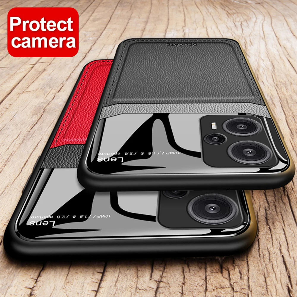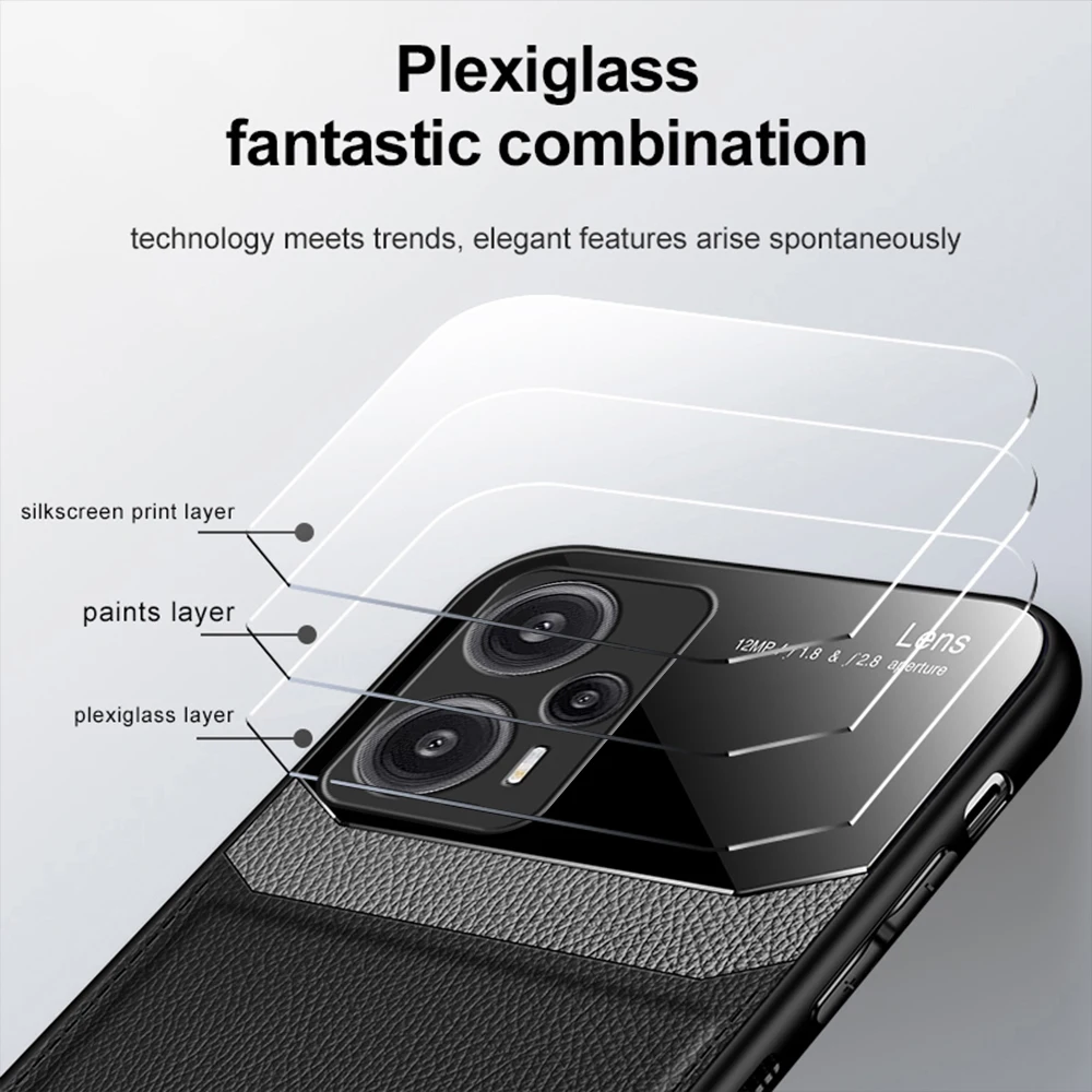 Для Redmi Note12 4G Чехол кожаный глянцевый плексиглас Мягкая силиконовая задняя крышка Redmy Note 12 4G 23021RAAEG 6,67 "противоударный чехол