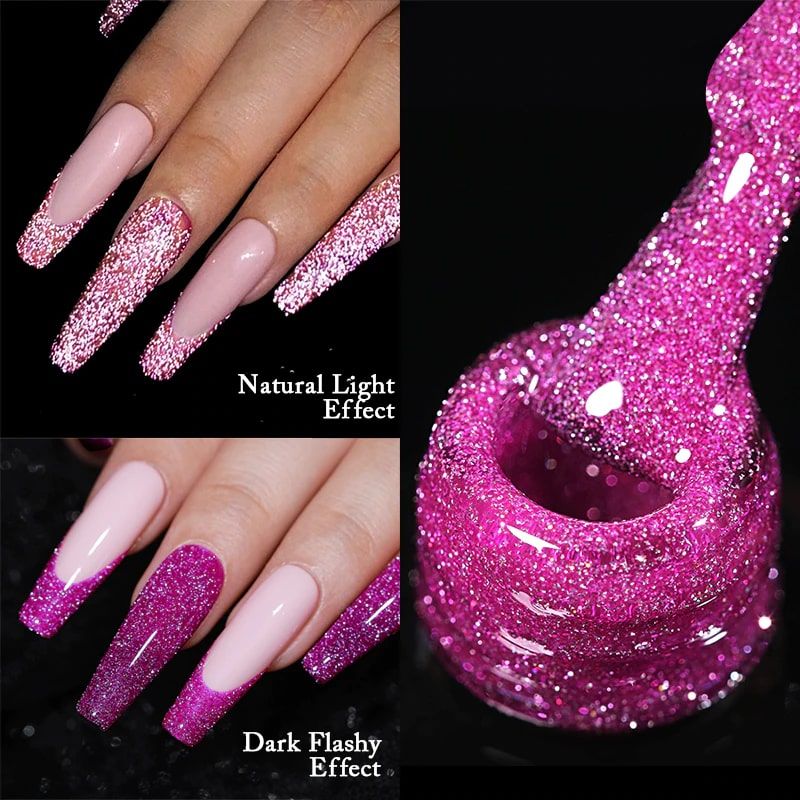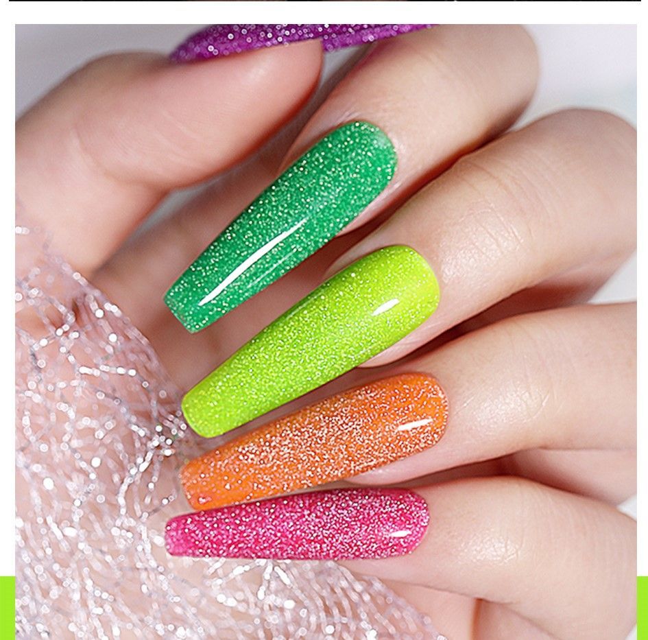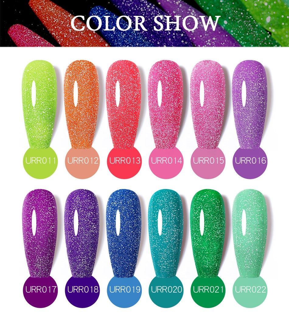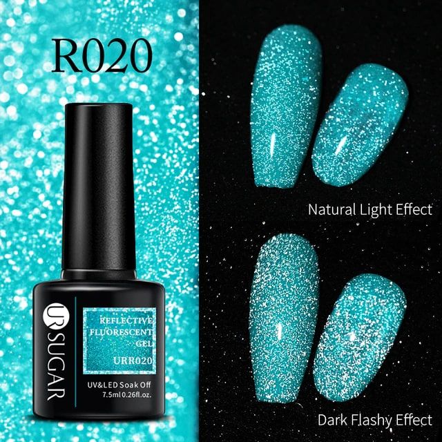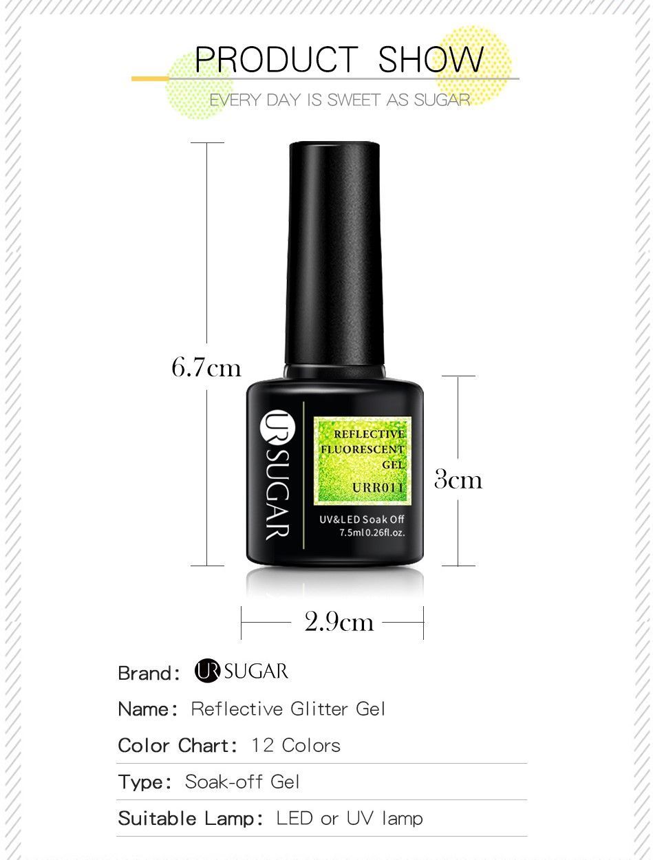 Блестящий светоотражающий, люминесцентный 2в 1 гель лак UR SUGAR светится в темноте неоновый, 7,5 мл