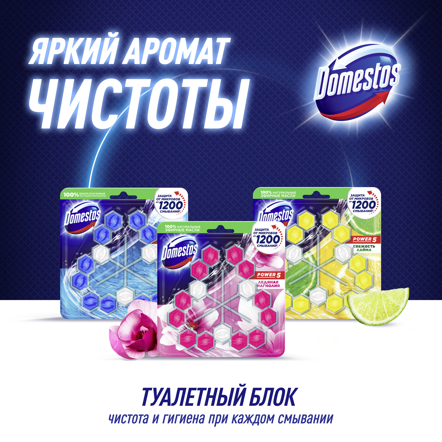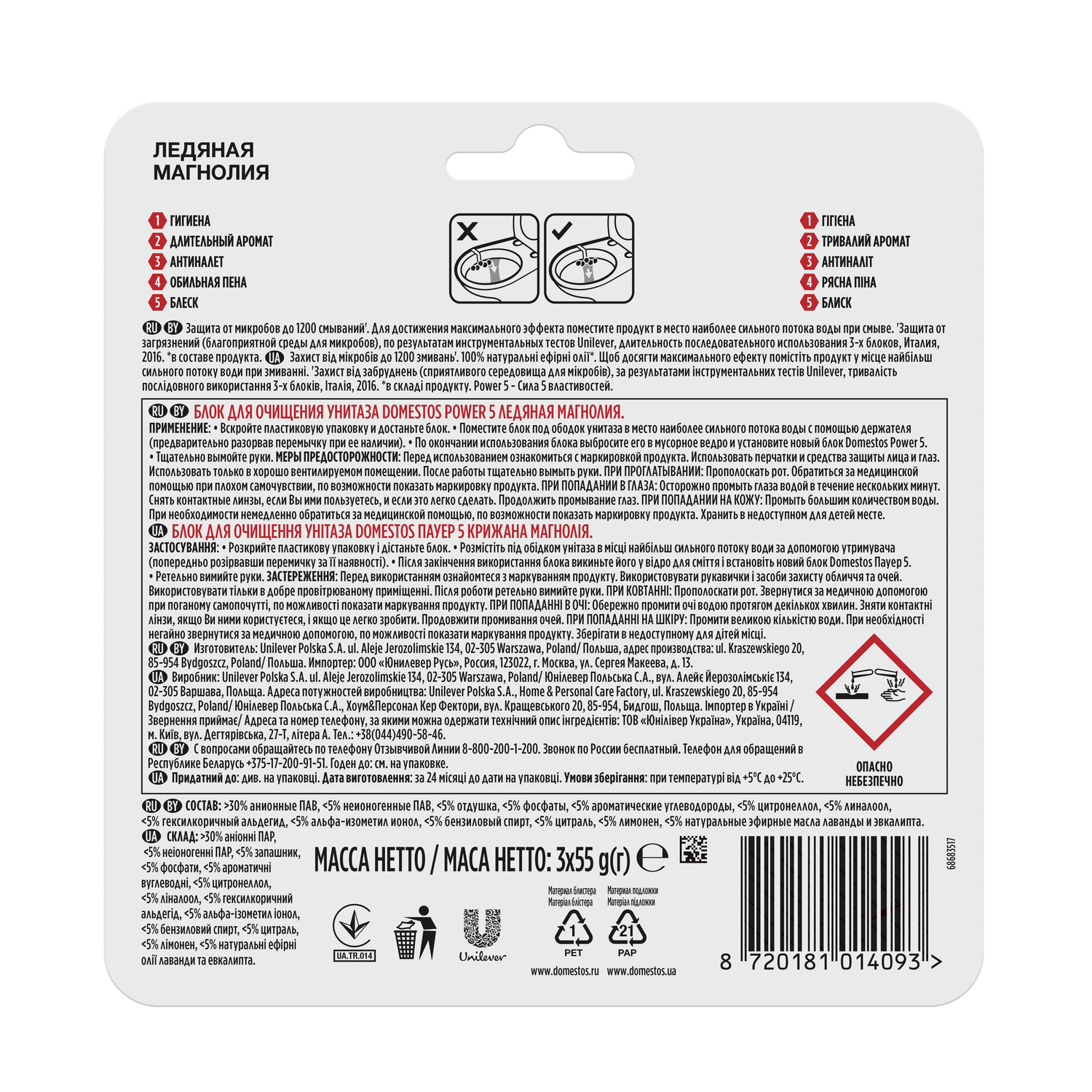 Блок для унитаза Domestos Power 5 Trio Ледяная магнолия, защита от микробов и налета, 3X55 гр