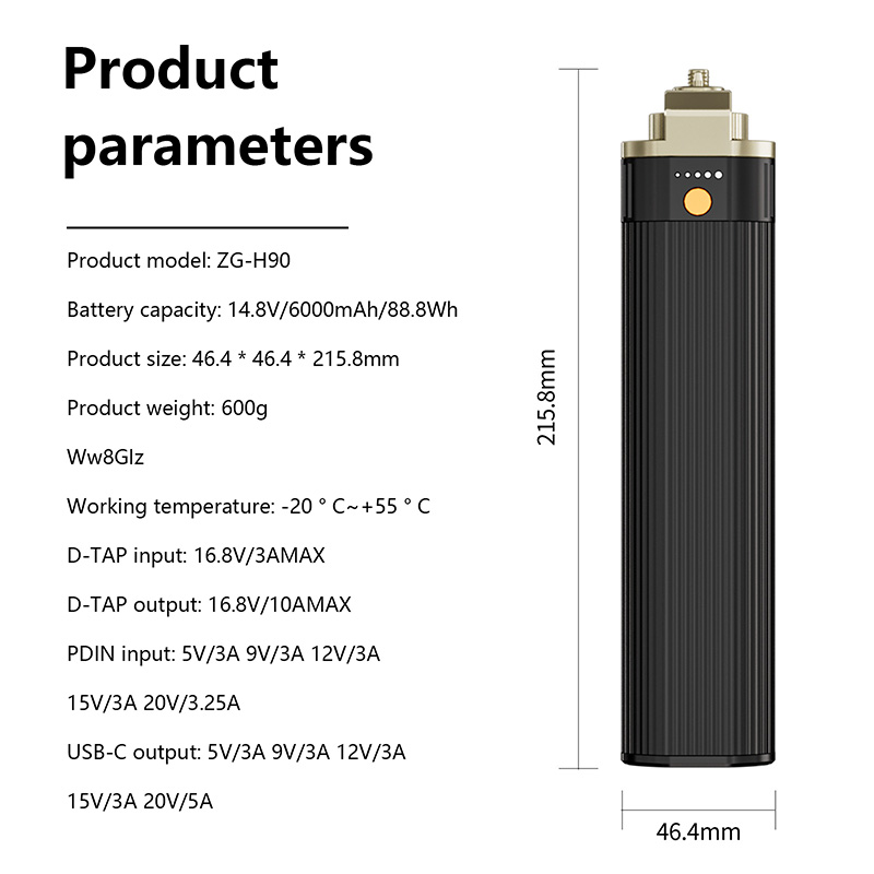 Блок питания ZGCINE H90, ручка, USB-C выход 14,8 в, 6000 мАч, Вт-ч для фотографий