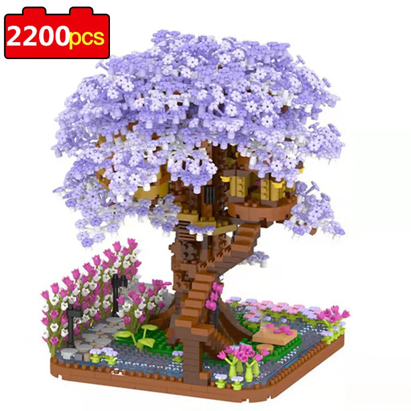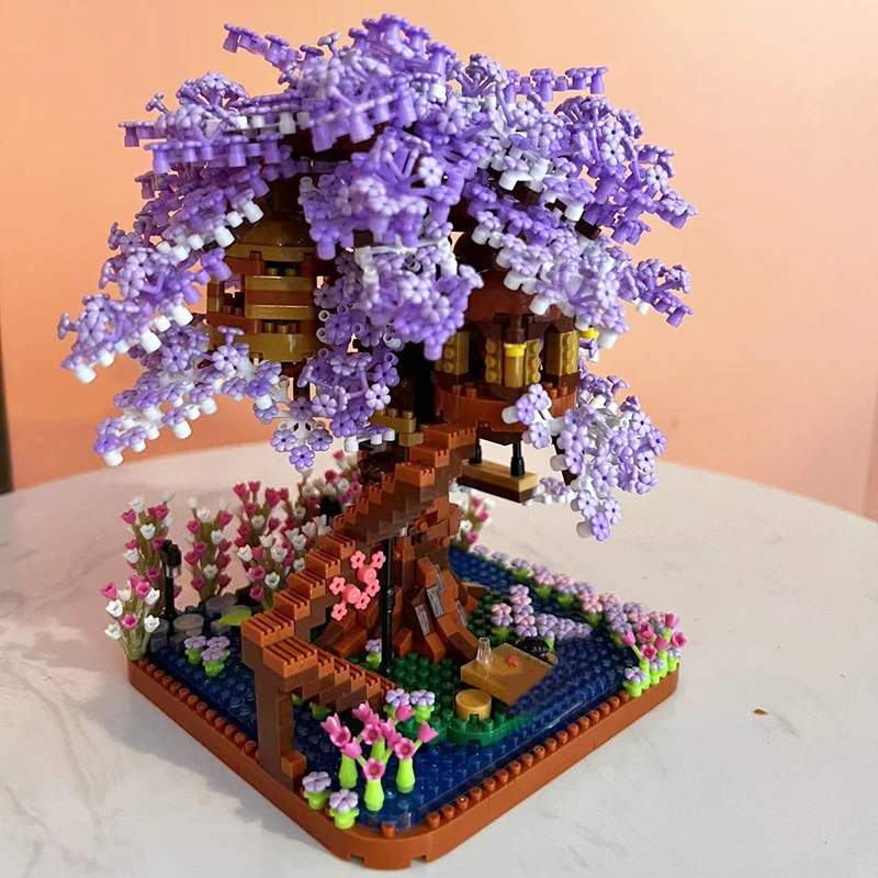 Feature 2 Cherry Blossom Mini Sakura House Tree Model Building Blocks