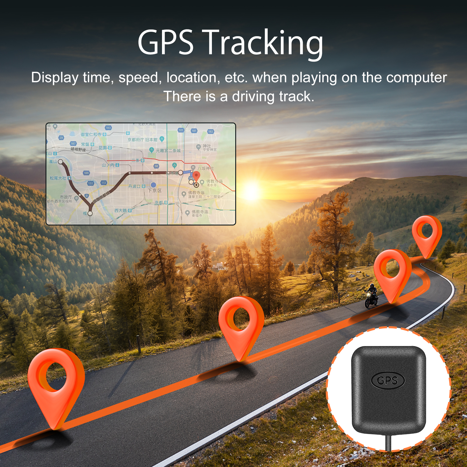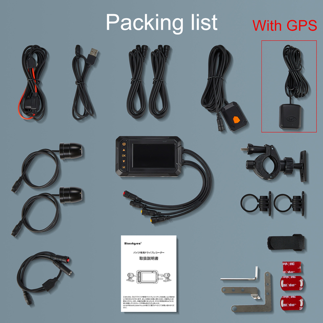 Вы можете решить, устанавливать ли модуль GPS в соответствии с вашими потребностями, видеорегистратор мотоцикла может отображать скорость движения (только км/ч, а не миль/ч).