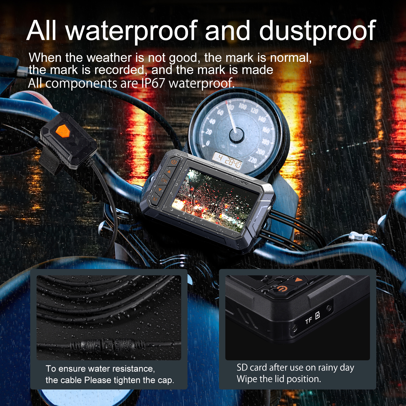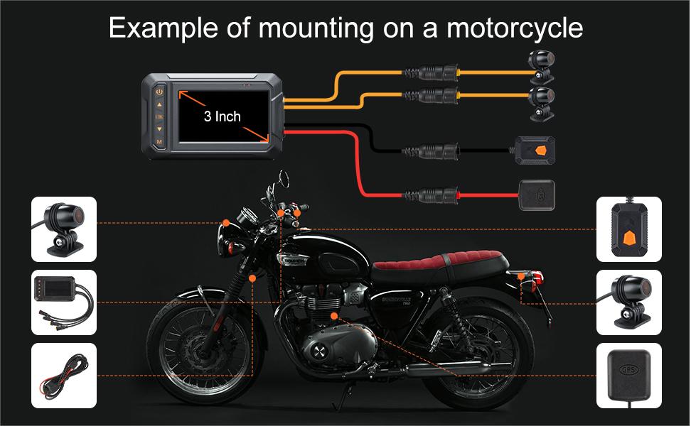 Видеорегистратор Sportbike подключен к включению/выключению зажигания, а питание подается непосредственно от аккумулятора мотоцикла или поддерживает блок питания (проверьте только перед установкой). Поддержка циклической записи, не беспокойтесь о том, чтобы пропустить важные моменты, карта Micro SD до 128 ГБ (SD-карта в комплект не входит)