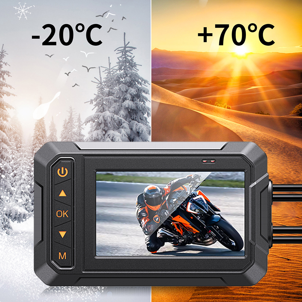 Материалы компонентов премиум-класса гарантируют, что видеорегистратор может работать при температуре от-20 ℃ до 70 ℃. Это Сопротивление означает, что вы можете продолжать использовать, где бы вы ни находились. Будь то в жаркой пустыне или холодных регионах, продолжайте запись.