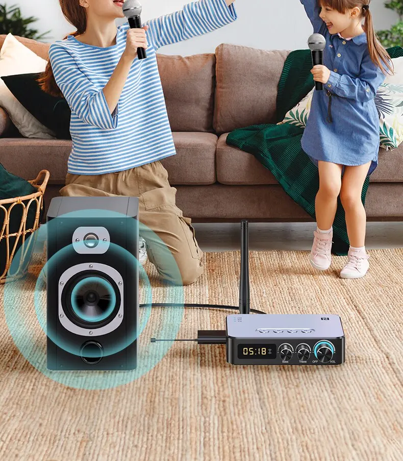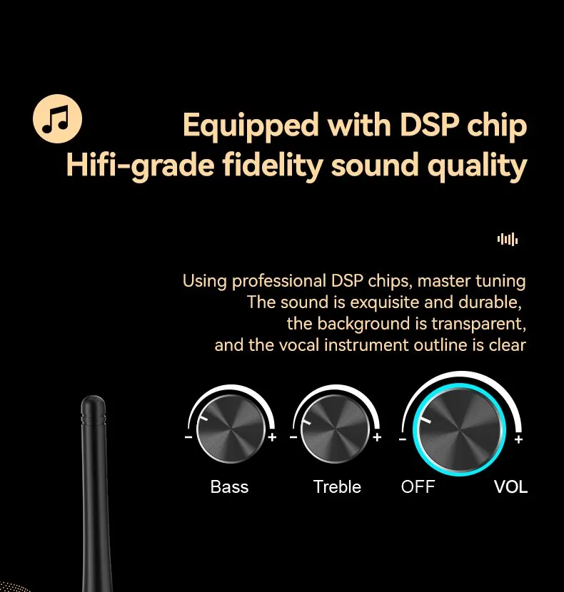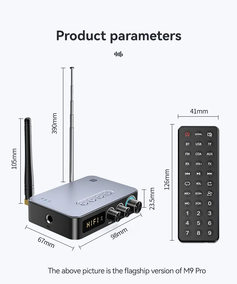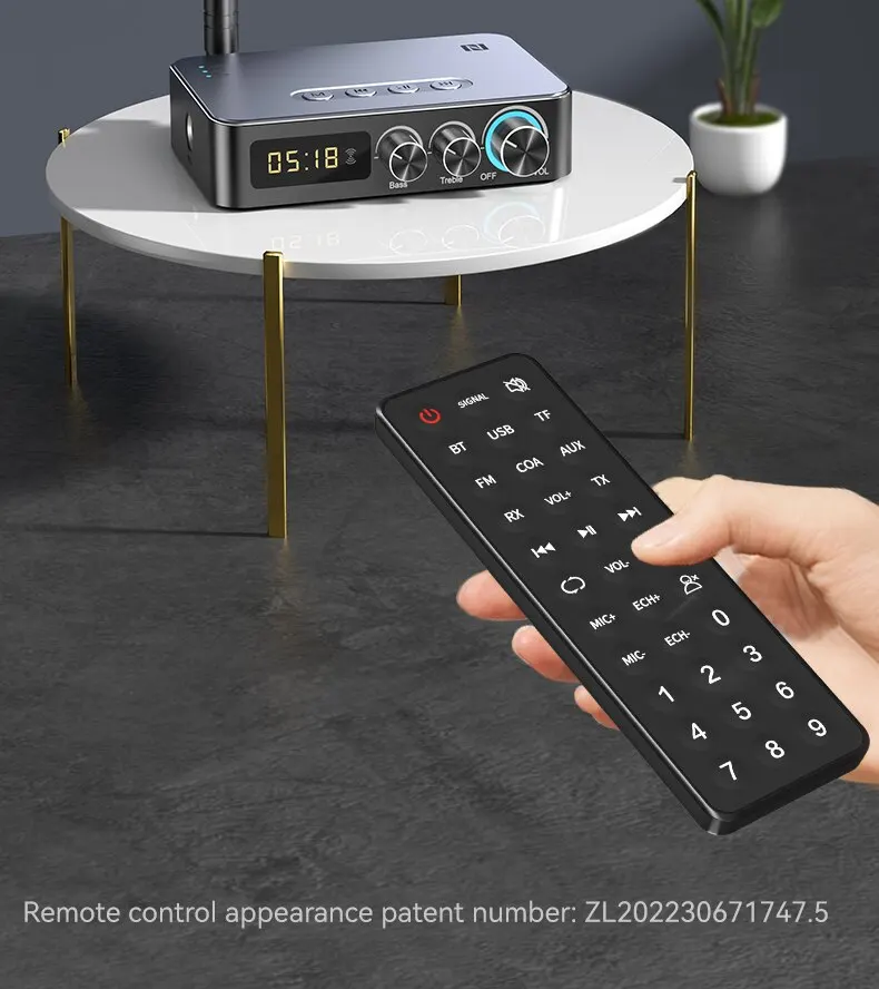 Основные функции: приемник Bluetooth, передатчик Bluetooth, воспроизведение диска U, воспроизведение карты TF, инфракрасный пульт дистанционного управления, касание NFC, Пение микрофона, регулируемый высокий и низкий тангаж, цифровой дисплей HD, DSP,NFC