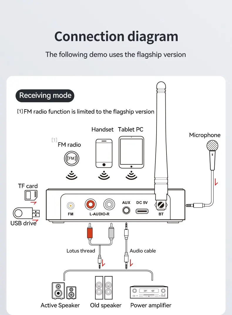 1. оптический и коаксиальный кабель в комплект не входят, U-диск и TF-карта также не входят в комплект