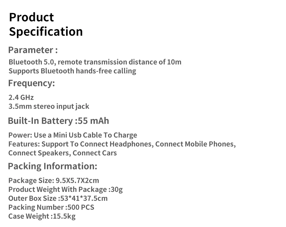1. Передача без потерь высокой четкости Bluetooth 5,0, подключи и работай, драйвер не требуется.