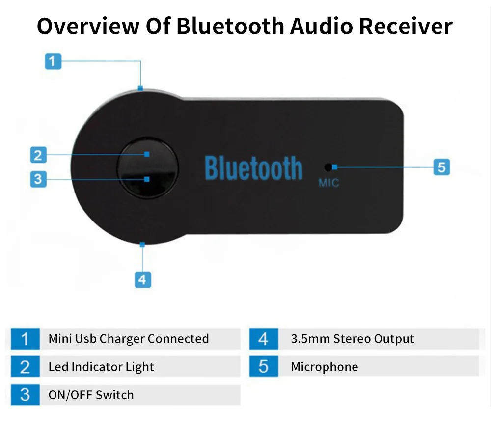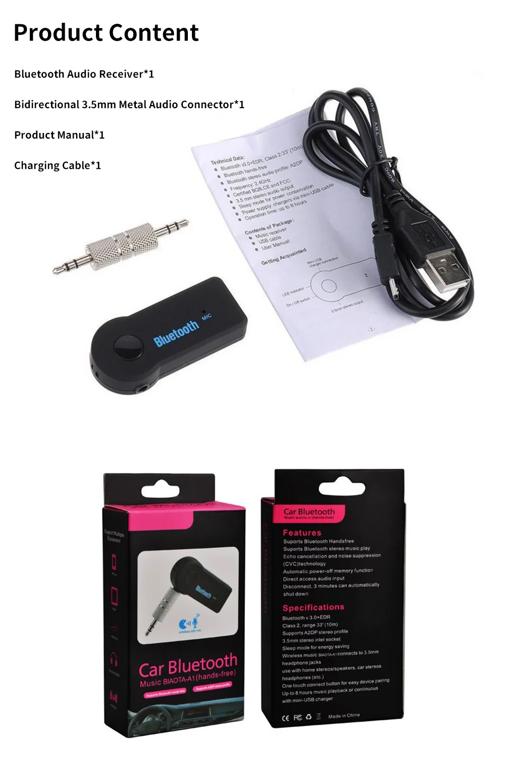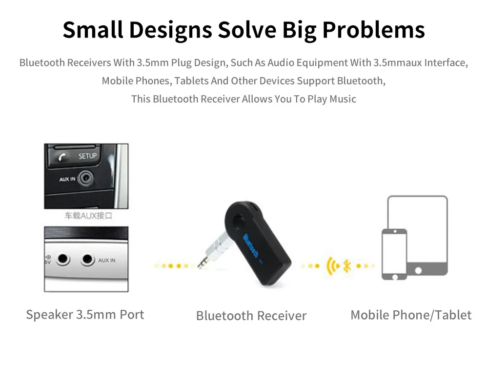 4. Небольшой продукт, Отличное использование, приемник Bluetooth может расширить функциональность Bluetooth через аудиоинтерфейс AUX.