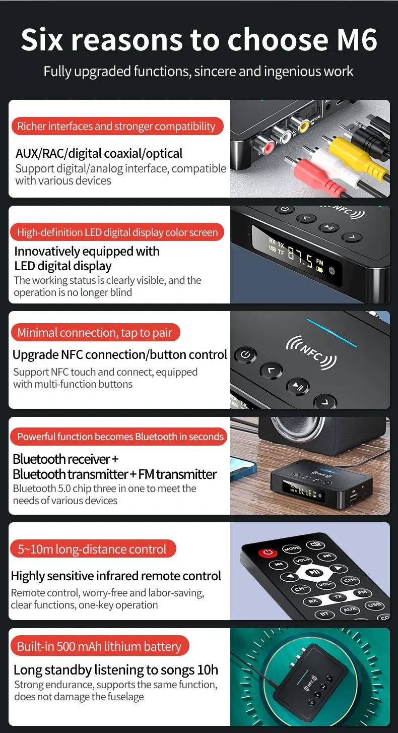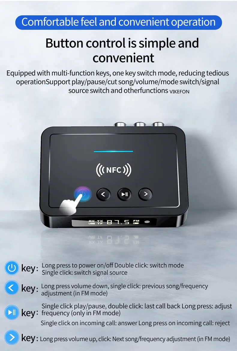 • Беспроводной аудиоадаптер NFC:С легкостью Подключите устройство к любому динамику или звуковой панели с поддержкой NFC.
