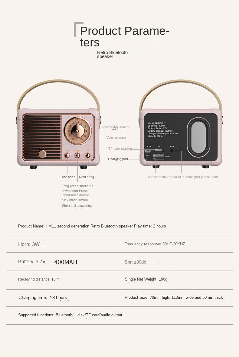 Bluetooth-динамик в стиле ретро с U-диском, TF-картой и FM-радио