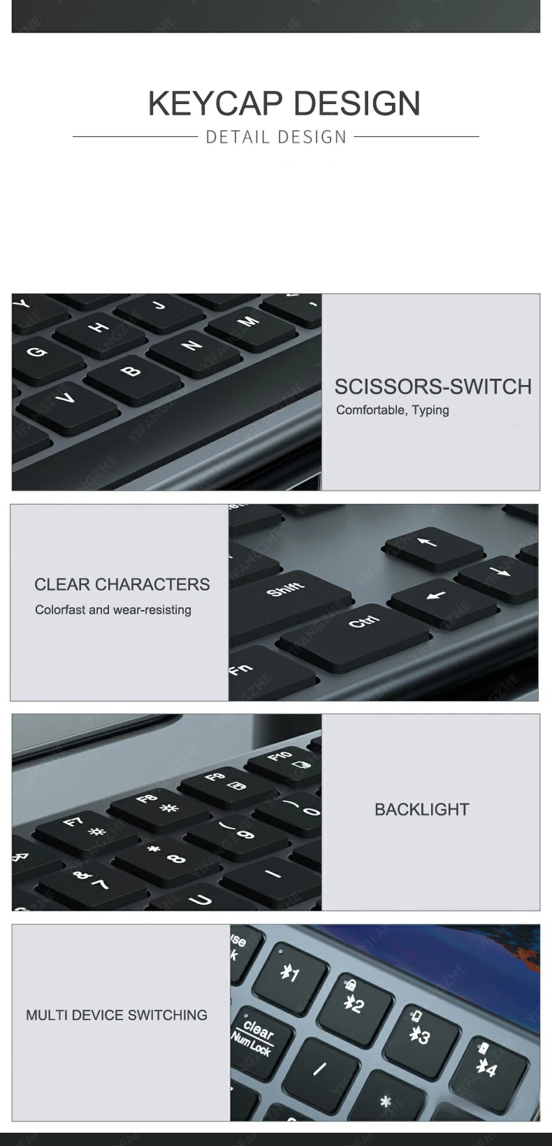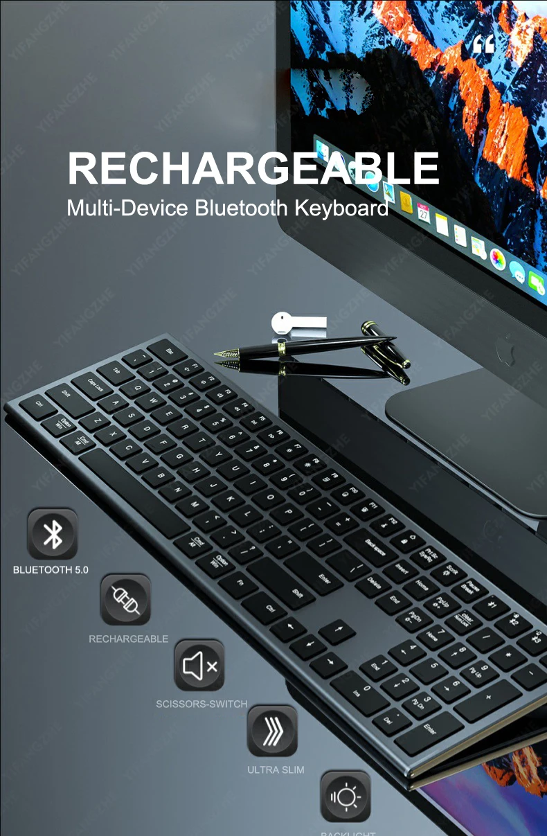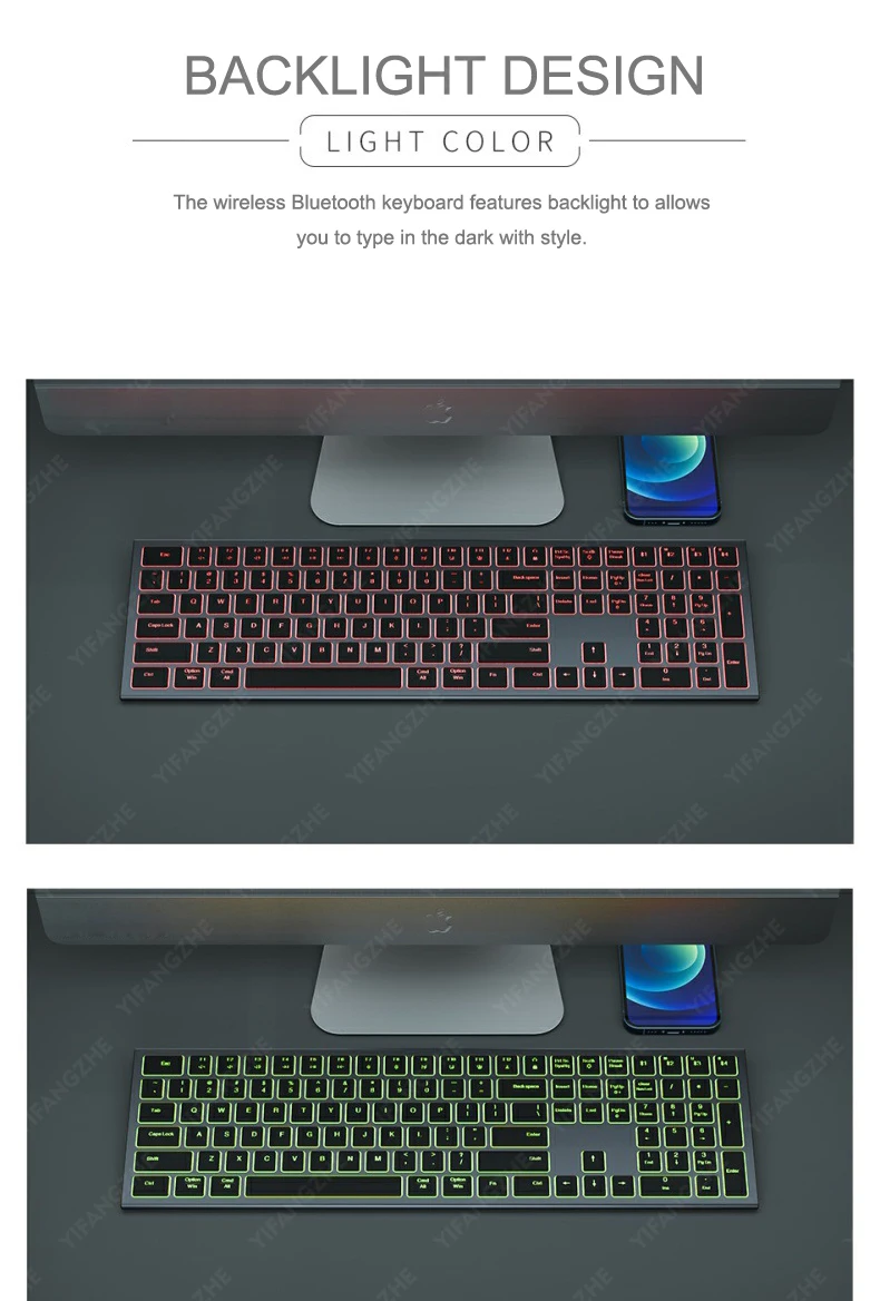 Bluetooth-клавиатура с подсветкой, многофункциональная беспроводная перезаряжаемая клавиатура с 110 клавишами, полноразмерная для iOS, Mac OS, Windows, Android